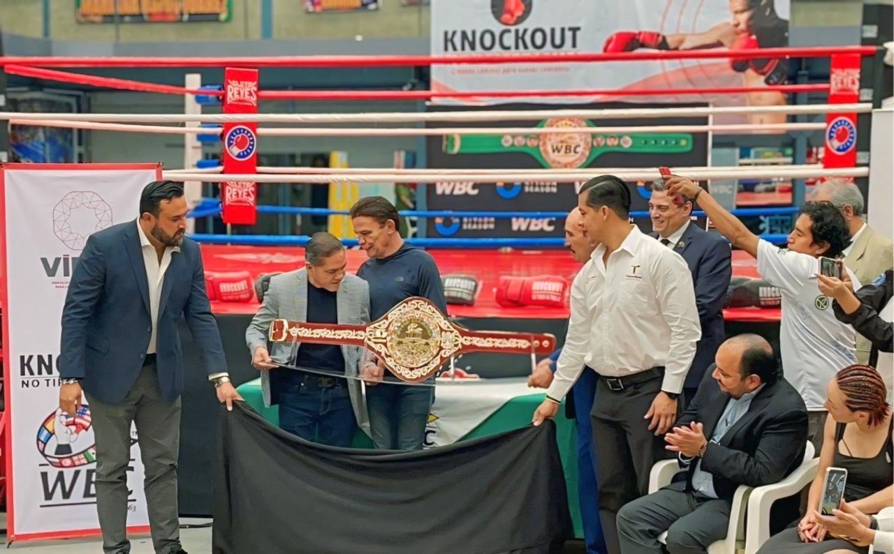 Con la representación del gobernador Américo Villarreal Anaya, el secretario de Turismo del estado, Benjamín Hernández Rodríguez, en compañía del presidente del Consejo Mundial de Boxeo (CMB), Mauricio Sulaimán, presentó el Cinturón Tamaulipas WBC, una obra de arte que muestra la riqueza cultural y la magia de las tradiciones tamaulipecas.