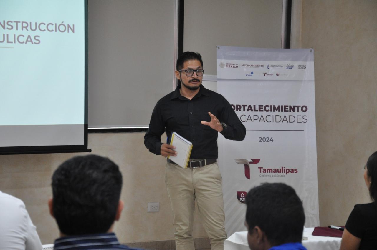 El taller de capacitación está dirigido al personal de los diversos organismos operadores de agua en Tamaulipas y se enmarca en el programa de “Fortalecimiento de Capacidades 2024”, organizado por la Secretaría de Recursos Hidráulicos para el Desarrollo Social en convenio con la Comisión Nacional del Agua y en coordinación con la ANEAS.