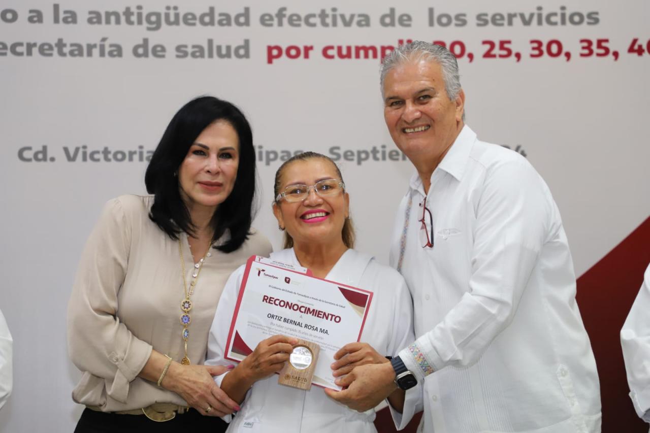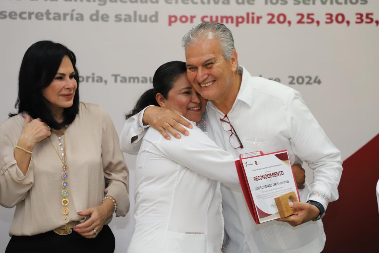 “Este reconocimiento refleja su compromiso, pero sobre todo, demuestra que contamos con personal de calidad, que con humanismo y ética de servicio ha sido parte de la transformación de uno de los ejes más sensibles del gobierno del doctor Américo: la salud de los tamaulipecos”, expresó Hernández Navarro durante su discurso.