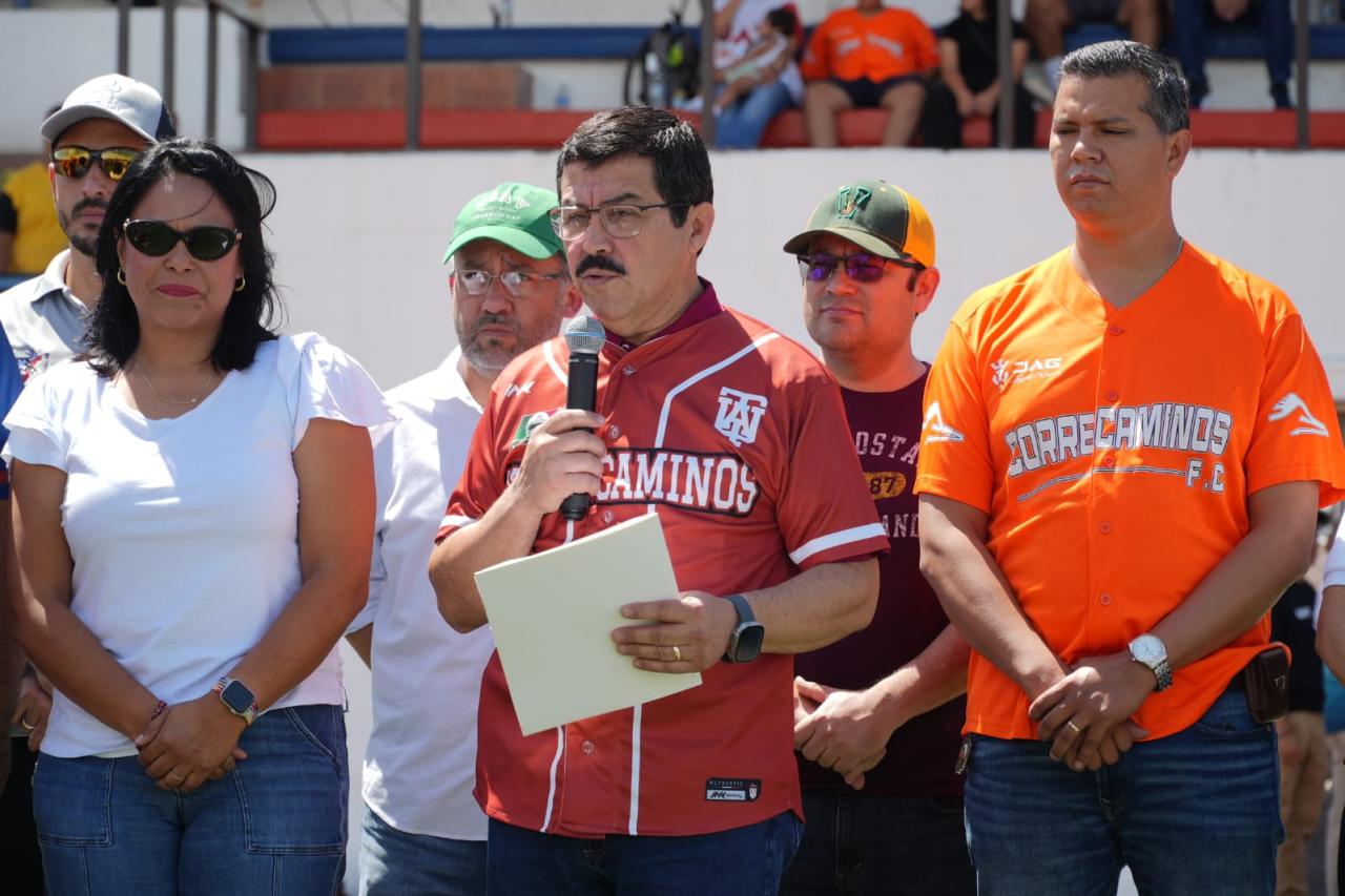 En acto protocolario, Dámaso Anaya Alvarado hizo la declaratoria inaugural y lanzó la moneda en el tradicional bolado para definir la patada de kickoff inicial.