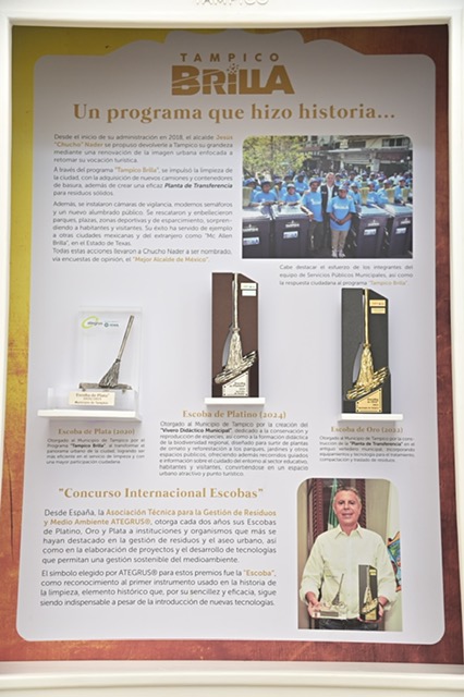 Chucho Nader detalló que la “Escoba de Plata”, obtenida en 2020, fue posible tras la implementación del programa de limpieza “Tampico Brilla”; en tanto que la “Escoba de Oro” conseguida en 2022 se obtuvo mediante la presentación del proyecto de la Central de Transferencia y su novedoso sistema de recolección, compactación y traslado de los residuos sólidos urbanos hacia el Relleno Sanitario.