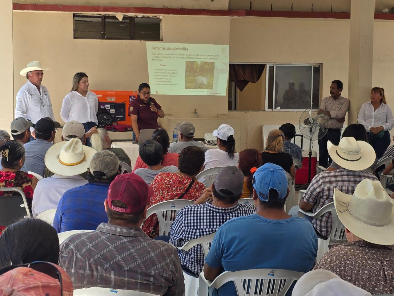 La directora de Fomento Forestal, Celene Ramírez García, quien asistió en representación del secretario de Desarrollo Rural, Pesca y Acuacultura de Tamaulipas, Antonio Varela Flores, agradeció la invitación y presentó el programa S110 Aprovechamiento de los Recursos Naturales 2024, cuya convocatoria estará vigente hasta el 18 de octubre. En este programa se otorgan apoyos a productores agropecuarios que van desde cercos hasta la construcción de presas.