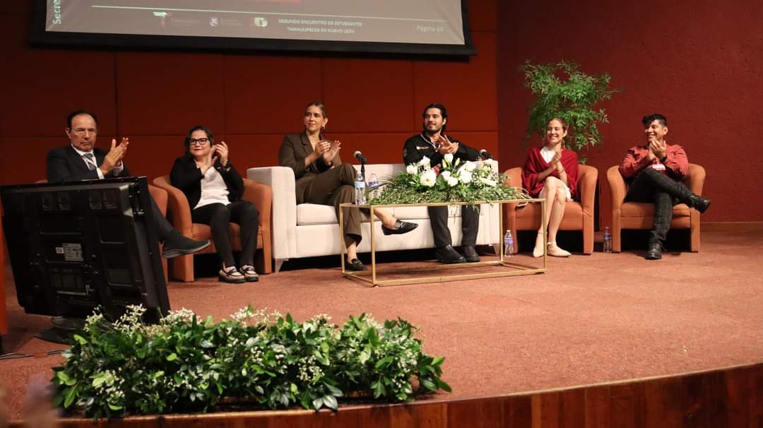 Durante el Segundo Encuentro de Estudiantes Tamaulipecos en Nuevo León, organizado por la Oficina de Representación de Tamaulipas en Nuevo León, y celebrado en la Biblioteca "Raúl Rangel Frías" de la Universidad Autónoma de Nuevo León, la secretaria de Educación, Lucía Aimé Castillo Pastor, y el secretario del Trabajo, Gerardo Illoldi Reyes, hicieron un llamado a los jóvenes universitarios a conocer las acciones y proyectos que impulsa el gobernador Américo Villarreal Anaya para lograr el desarrollo y bienestar de las y los tamaulipecos.
