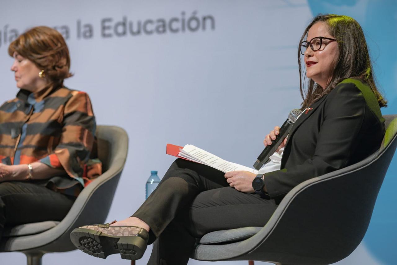 Junto a la secretaria de Educación de Tamaulipas, en el panel de inclusión digital participaron Leandro Folgar, presidente de Conectividad Educativa de Informática Básica para el Aprendizaje en Línea (Ceibal); Sofía Leticia Morales Garza, secretaria de Educación de Nuevo León, y Astrid Hollander, jefa de Educación en UNICEF México.