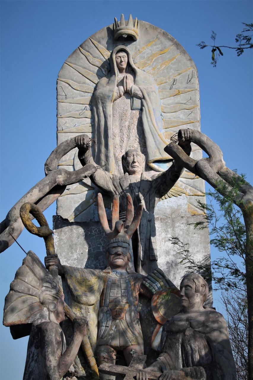 A unos metros de la vía de comunicación que accede al Puente Internacional Phar, hay un amplio predio que ahora sirve como estacionamiento de camiones de carga, al fondo entre la maleza se alzan aun- resistiendo al olvido y tiempo- una amplia colección de esculturas que se atribuye son autoría de Jerónimo Monterrubio, quien arribó a Reynosa a mediados del siglo pasado procedente de San Felipe Orizatlan en el Estado de Hidalgo.
