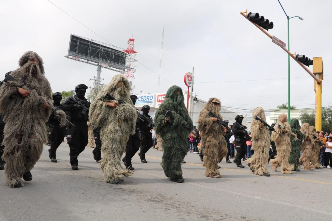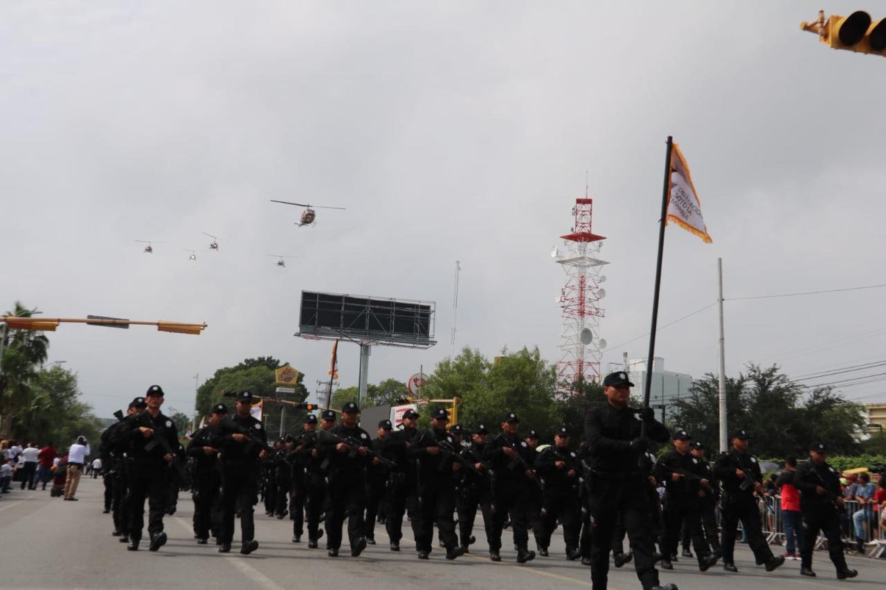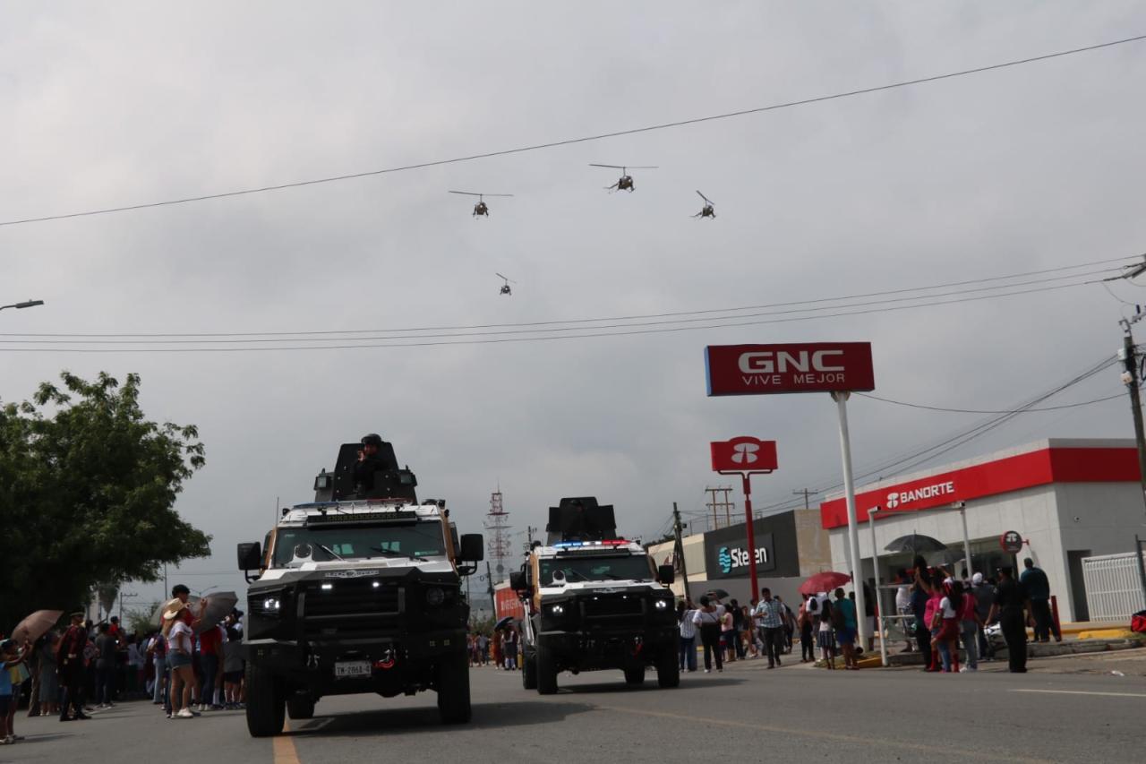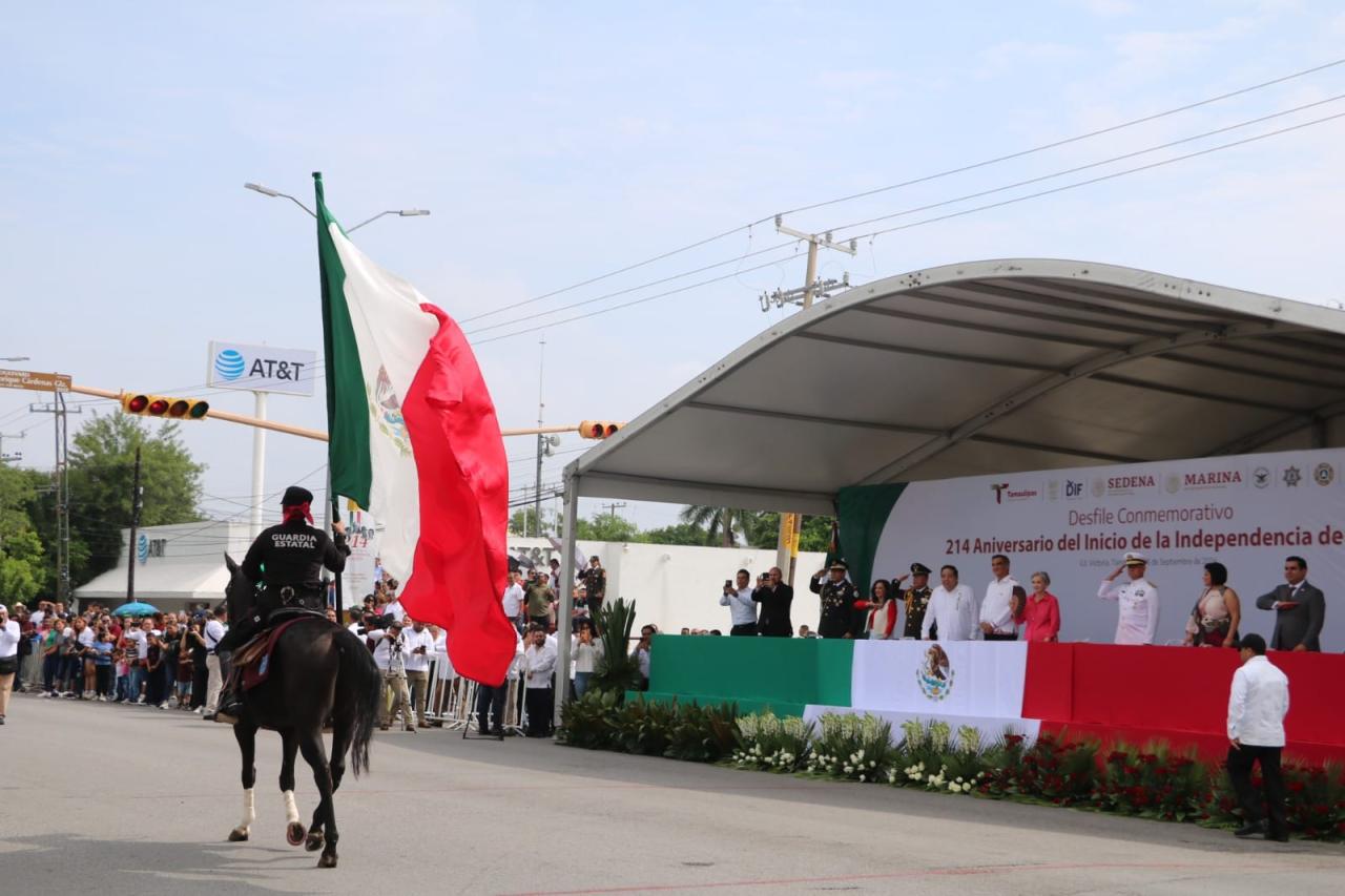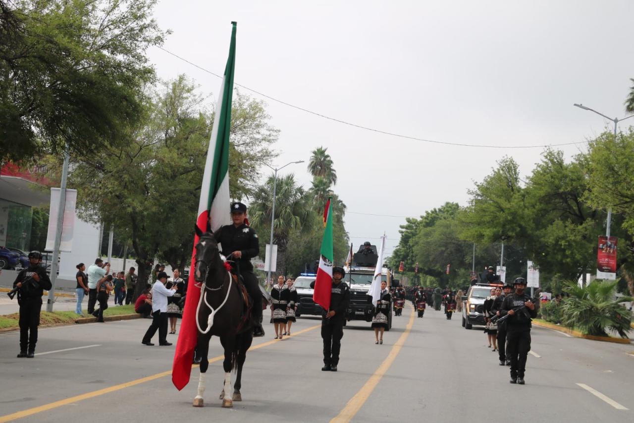 Tras realizar la Guardia de Honor en el Monumento a los Héroes de la Independencia, encabezada por el gobernador, Américo Villarreal Anaya; el desfile conmemorativo dio inicio en la Calle Juan B. Tijerina y Coahuila.