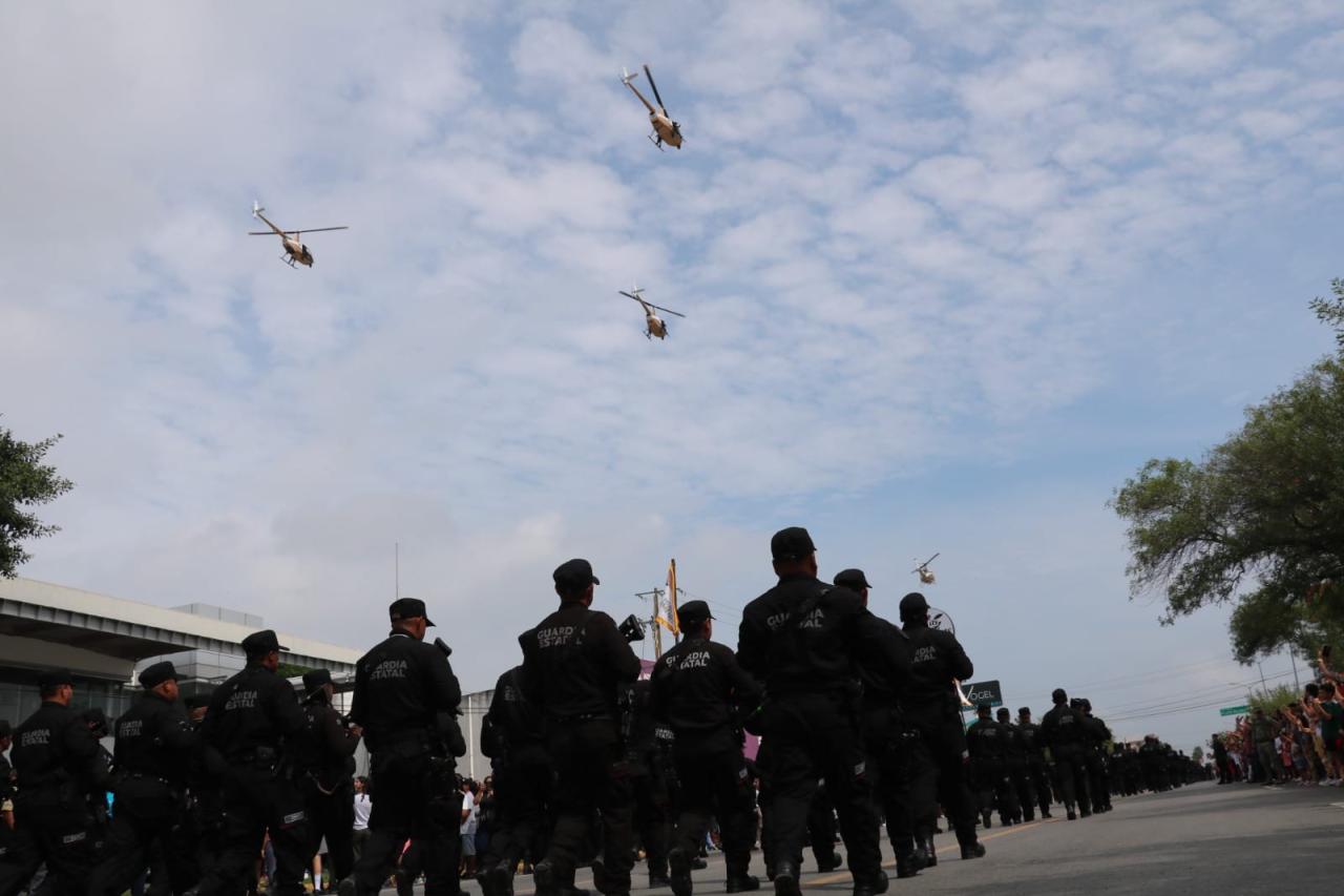 En lo que respecta a la SSPT, el contingente fue encabezado por la Banda de Guerra y el Grupo Motorizado de la Guardia Estatal, seguido de las banderas monumental y nacional, así como el escudo de Tamaulipas a cargo de la escolta femenil.