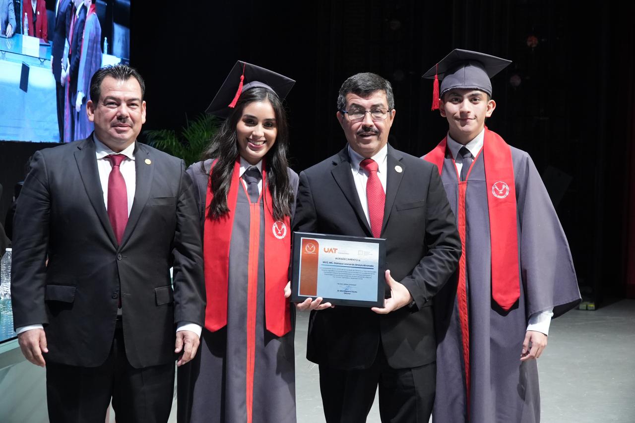 Luego de agradecer a los padres de familia la confianza depositada en la UAT para la formación de sus hijos, el rector dijo que el logro alcanzado por los graduados es el resultado de su sacrifico y su apoyo incondicional.