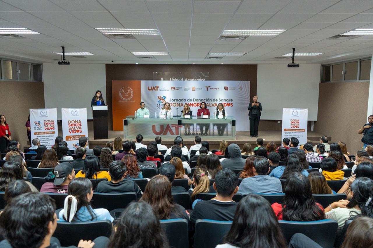 La presentación del convenio se llevó a cabo en el auditorio de la Unidad Académica de Trabajo Social y Ciencias para el Desarrollo Humano, en donde se destacó la importancia de la donación de sangre como parte del compromiso humanista y solidario de la UAT.
