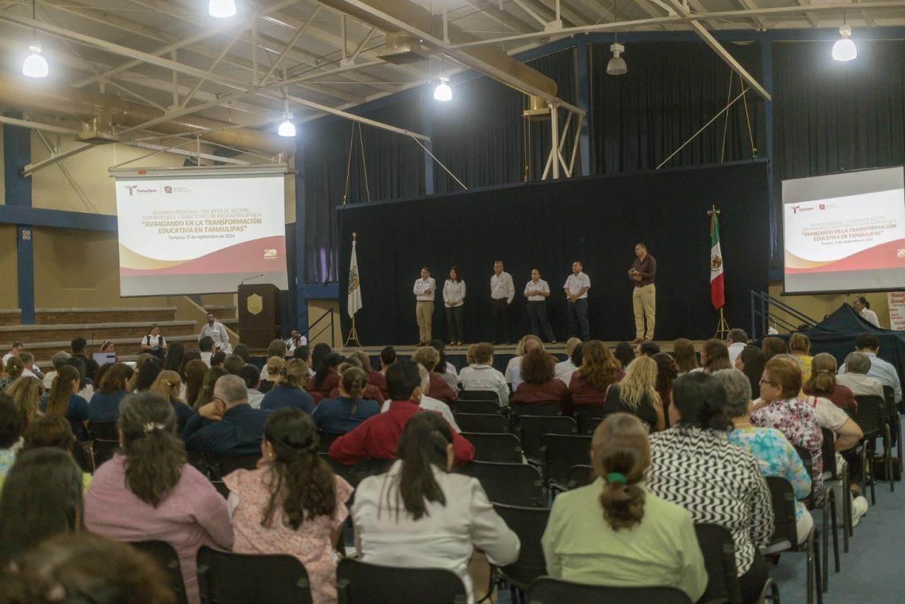Tampico, Tamaulipas. – Con la participación de jefes de sector, supervisores y directores de educación básica, se llevó a cabo en el municipio de Tampico, la Reunión Regional “Avanzando en la Transformación Educativa en Tamaulipas” presidida por la secretaria de Educación, Lucía Aimé Castillo Pastor.
