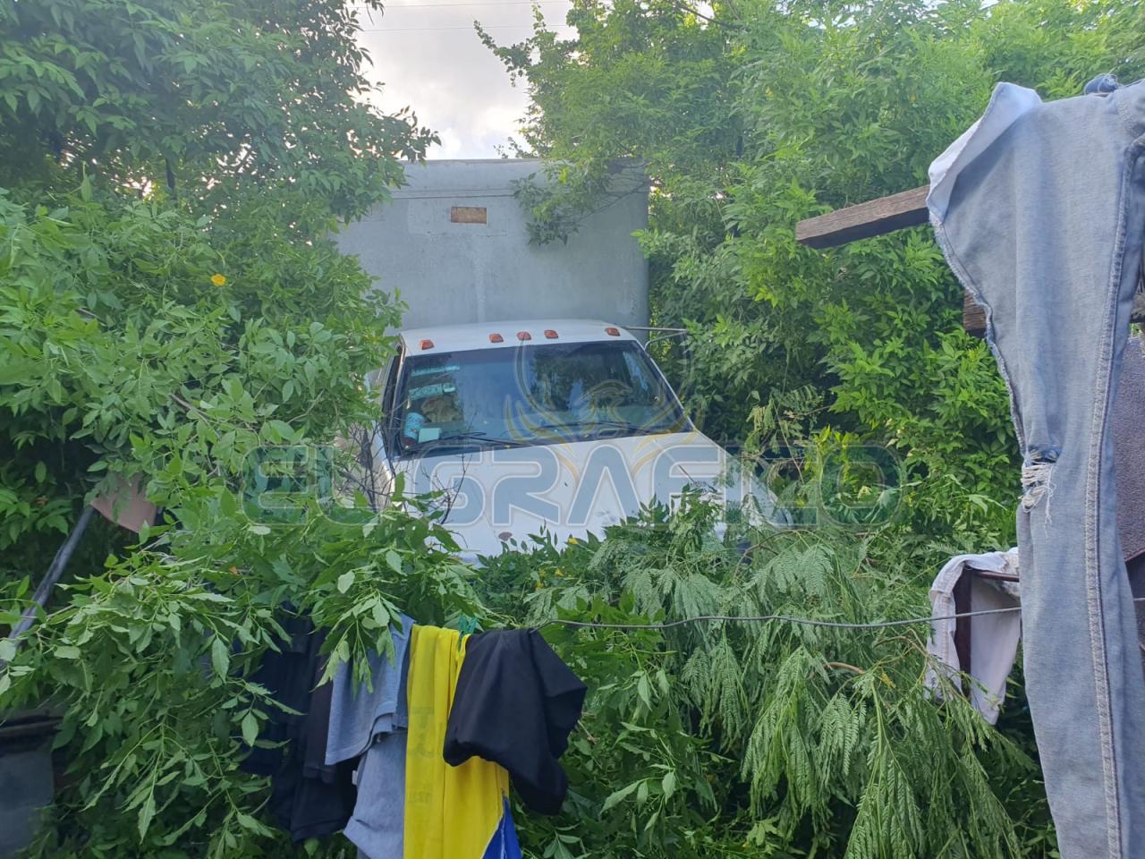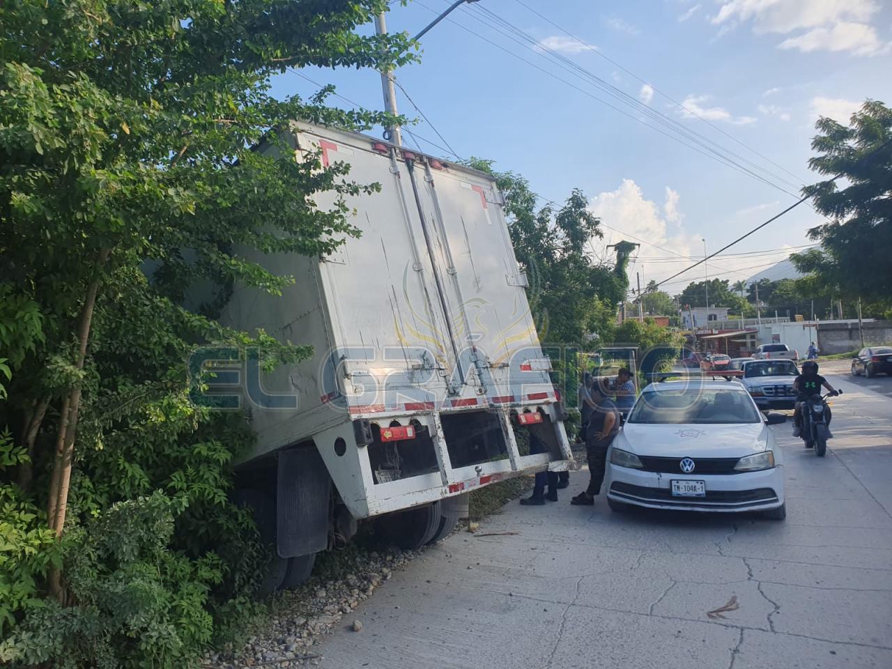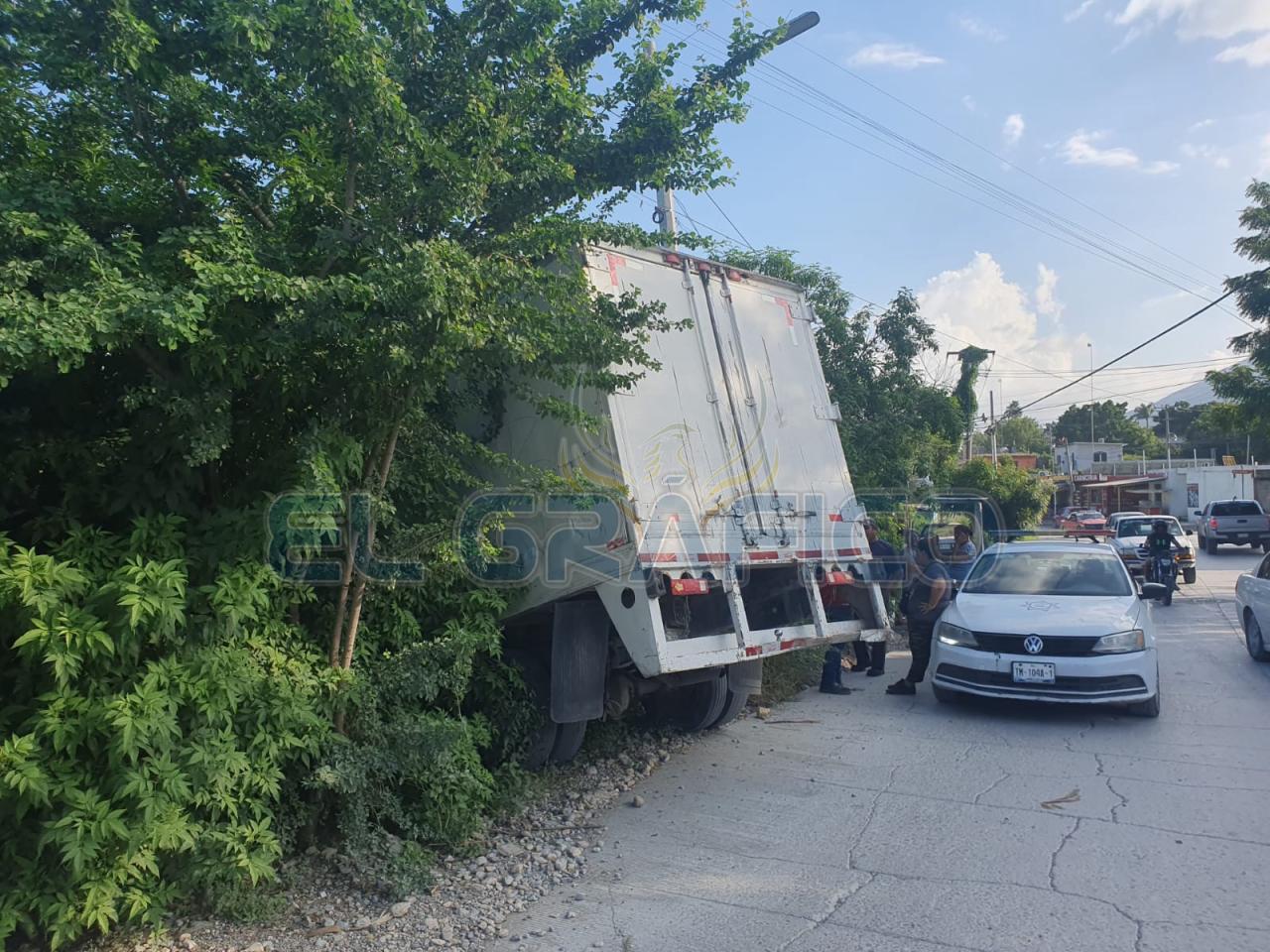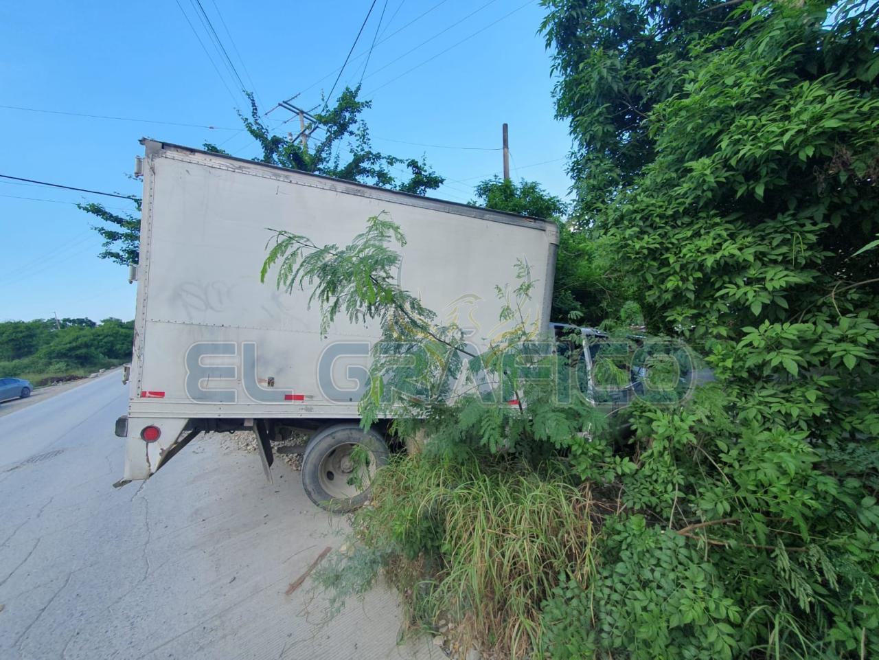 De acuerdo con la versión del conductor, el vehículo se quedó sin frenos y al acabarse la calle en una intersección en “T”, el camión “topa” con la Calle Camino Viejo del Pueblo y se va derecho cayendo en una pendiente hasta que se detuvo al interior del patio de una casa al chocar contra la barda de lámina de una propiedad.