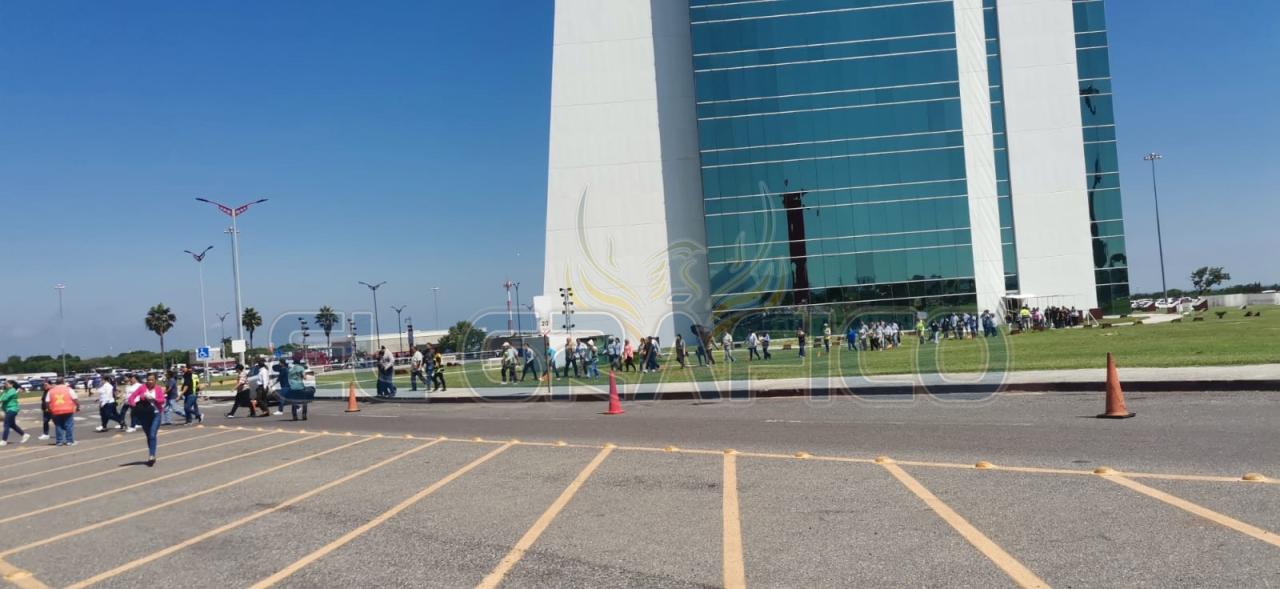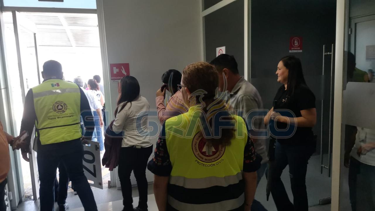 Con brigadistas en cada uno de los 23 pisos del inmueble, el personal de las diferentes secretarías y visitantes procedieron a desalojar la Torre Bicentenario.