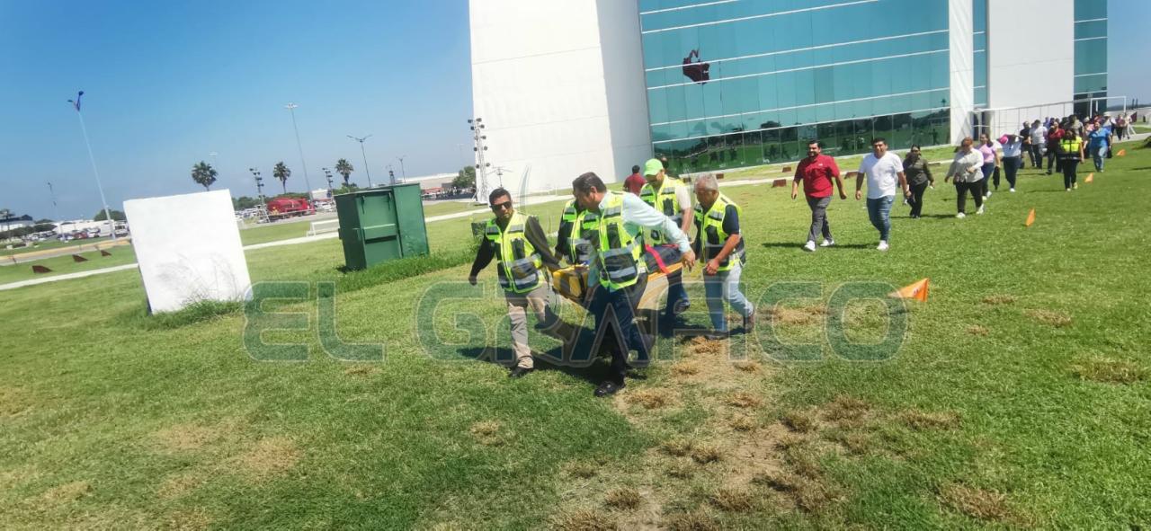 Como parte del simulacro, durante el ejercicio se dio la atención por parte de personal paramédico a una persona del sexo masculino, la cual después de ser extraído del inmueble fue atendido por paramédicos de Cruz Roja.