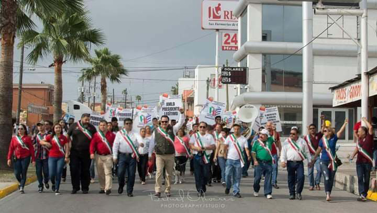 Las imágenes de aquella “marcha” quedaron para la posteridad, pues Lara Bazaldua y sus correligionarios, desfilaron por las calles con “bandas presidenciales” en sus pechos y con claros mensajes de apoyo a Lopez Obrador.