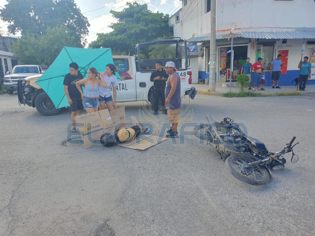 Un motociclista resultó con probable fractura en su pierna Izquierda al estrellarse contra un automóvil cuyo conductor ignoró un disco metálico de alto.