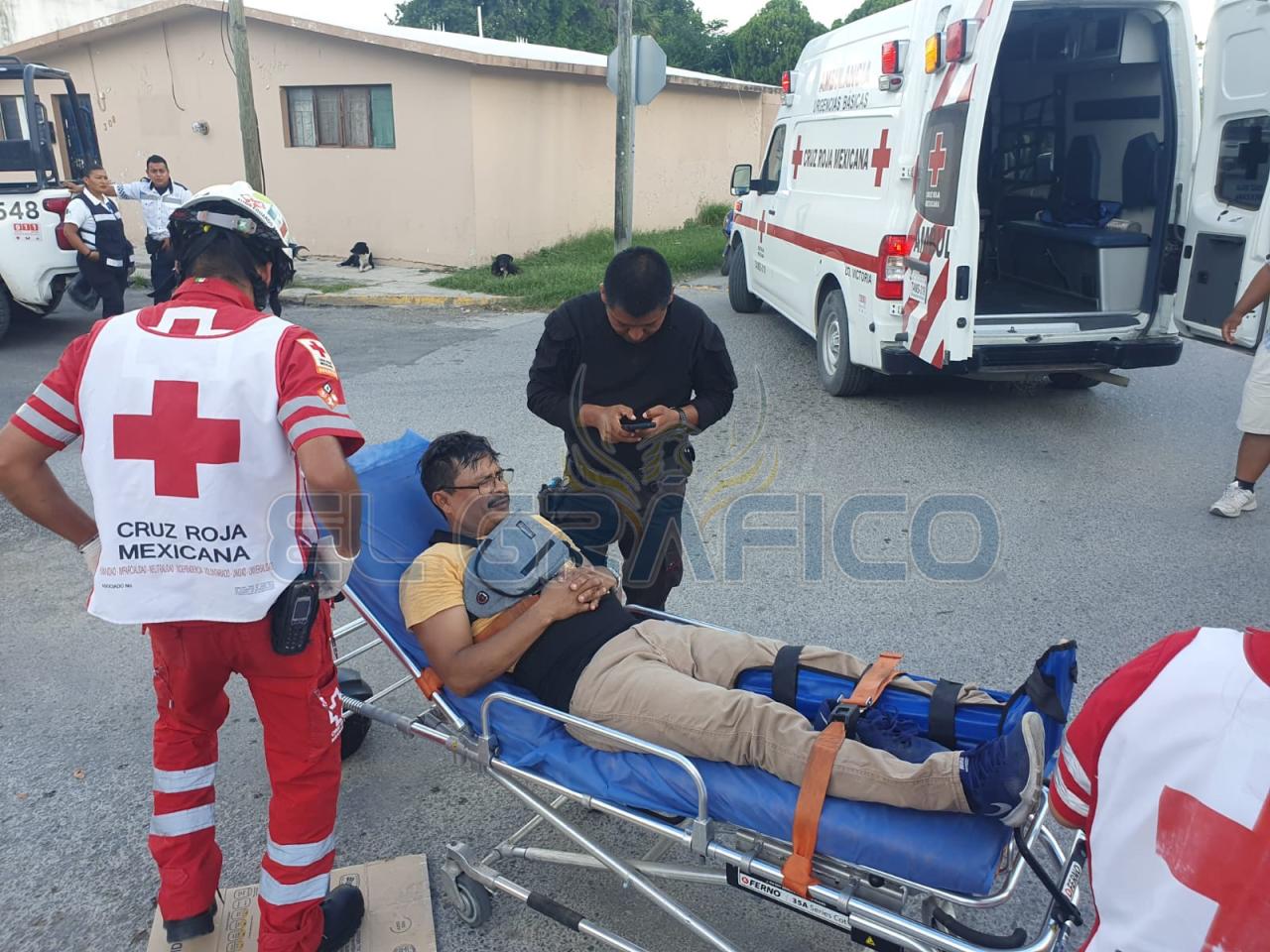 Paramédicos de Cruz Roja Mexicana le dieron los primeros auxilios al motociclista para posteriormente trasladarlo a un hospital.