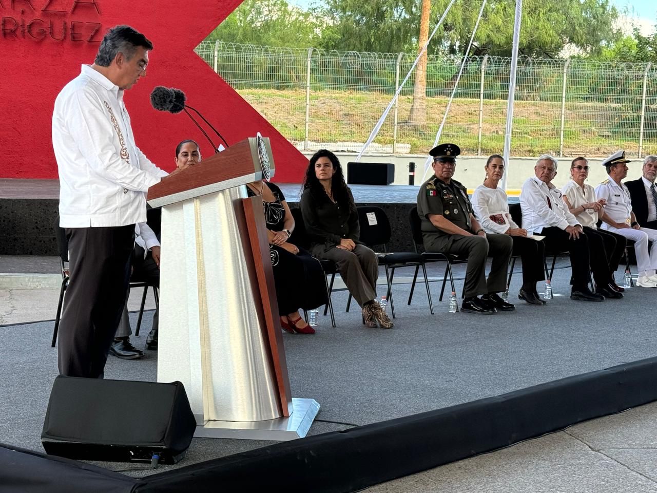 La ceremonia también contó con la presencia de: Luis Crescencio Sandoval, secretario de la Defensa Nacional; Rafael Ojeda Durán, secretario de Marina; Carlos Tijerina, bisnieto de Catarino Garza; Luisa María Alcalde, secretaria de Gobernación; Leticia Ramírez, secretaria de Educación Pública; Laura Beatriz Moreno Rodríguez, embajadora de México en Chile; Alejandro Gertz Manero, fiscal general de la República; Laura Elena Carrillo Cubillas, subsecretaria para América Latina y el Caribe de la Secretaría de Relaciones Exteriores; Diego Prieto Hernández, director del Instituto Nacional de Antropología, y Rubén Sauceda, presidente municipal de Matamoros.