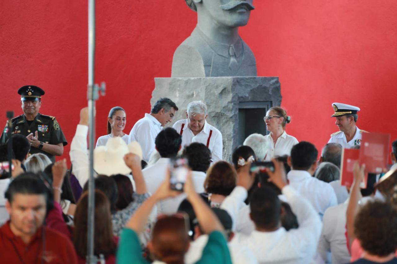 En el marco de la develación del monumento a Catarino Erasmo Garza Rodríguez y en presencia de la presidenta electa Claudia Sheinbaum Pardo, y la doctora Beatriz Gutiérrez Müller, el gobernador entregó a López Obrador un reconocimiento con 377,474 firmas de tamaulipecas y tamaulipecos que se hicieron presentes en distintos espacios y plazas públicas, "con el fin de expresarle nuestra alegría de que este país se haya transformado para bien".