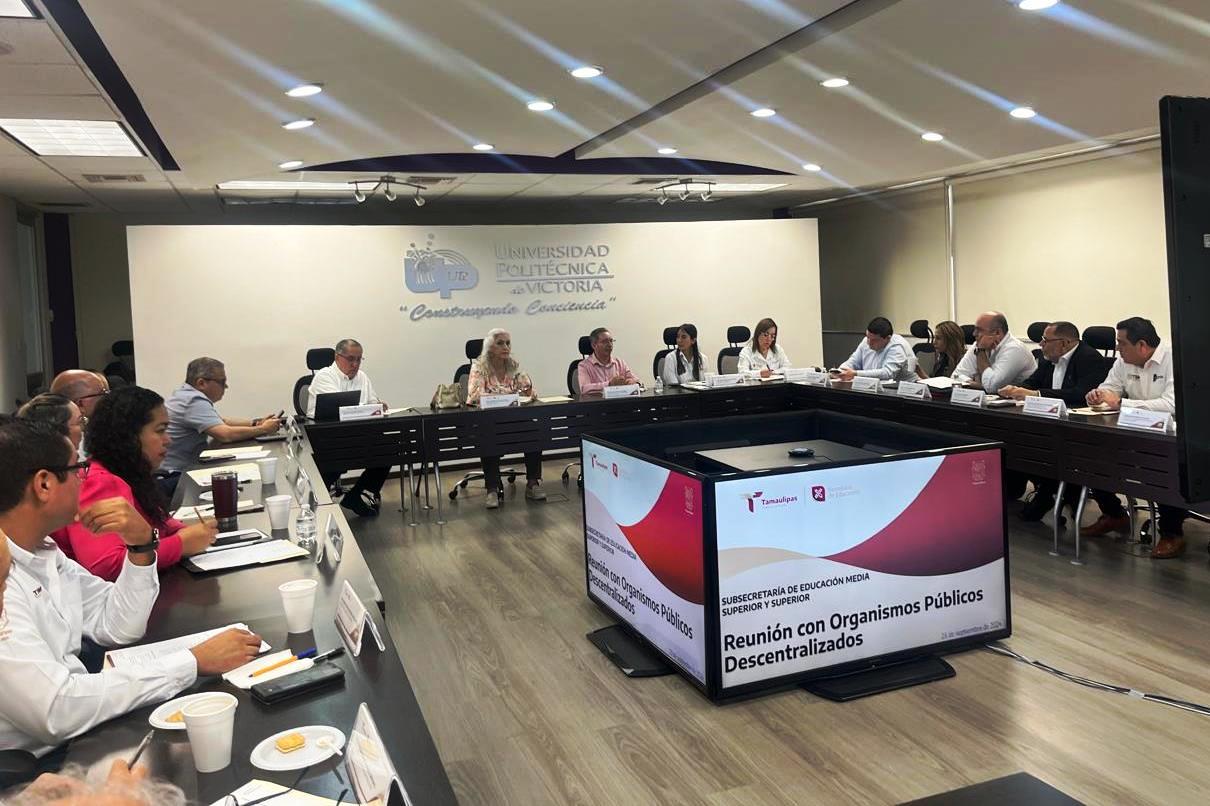 Ciudad Victoria, Tamaulipas. – Con la finalidad de intercambiar experiencias y analizar los programas académicos, rectores y directores de Organismos Públicos Descentralizados (OPD) del sector educativo, sostuvieron una reunión de análisis e intercambio de experiencias con Guadalupe Acosta Villarreal, subsecretario de Educación Media Superior y Superior de la Secretaría de Educación de Tamaulipas (SET).