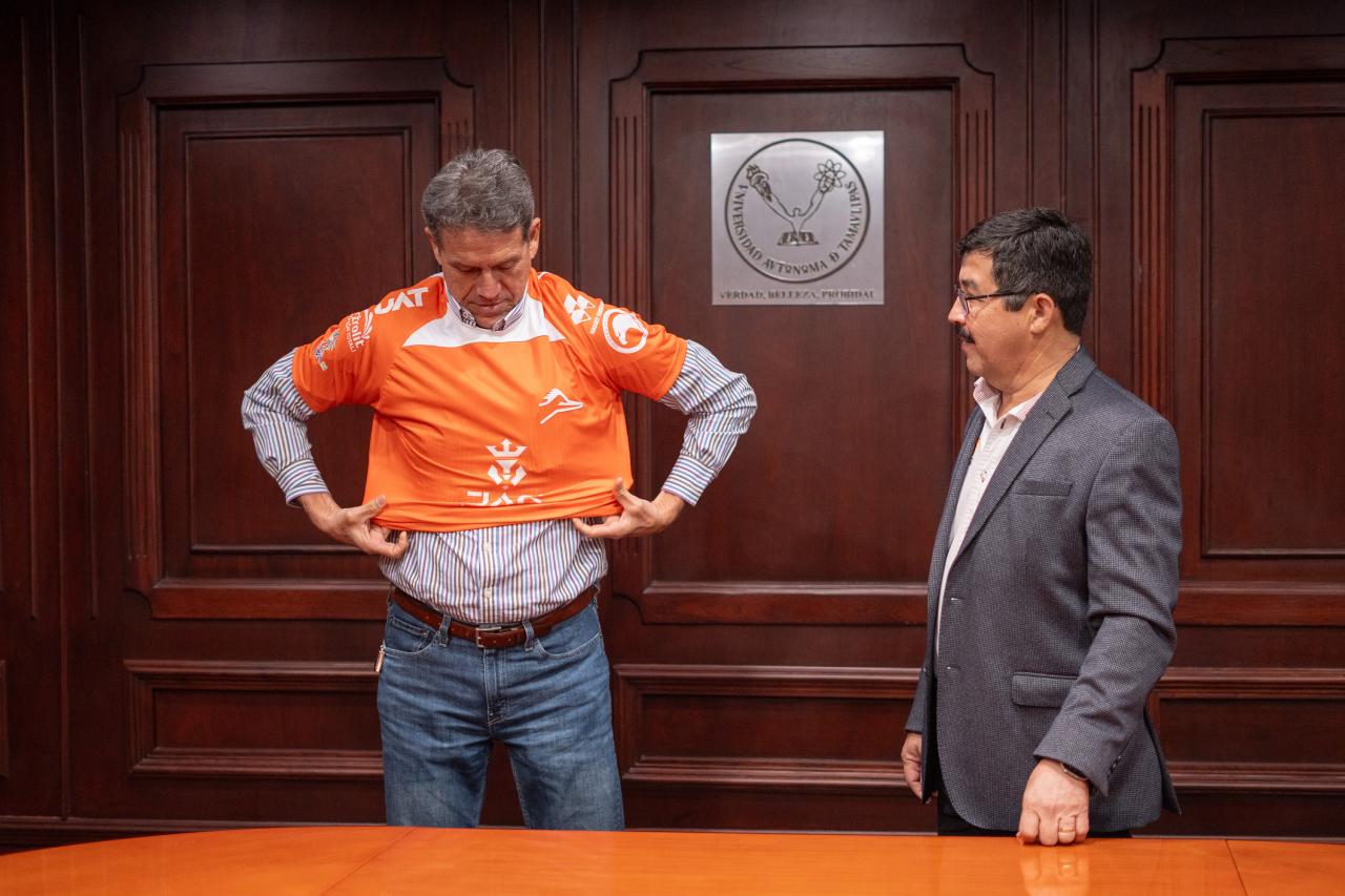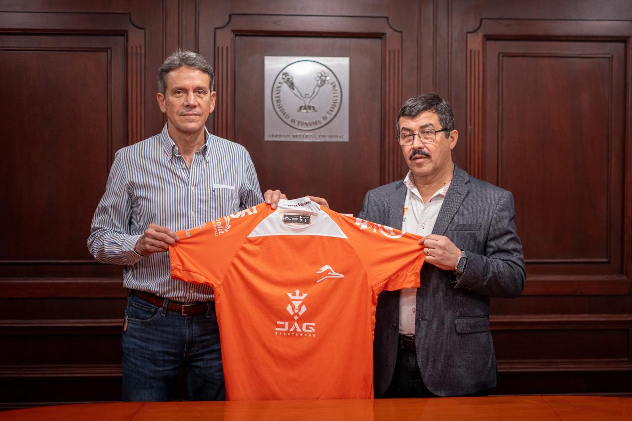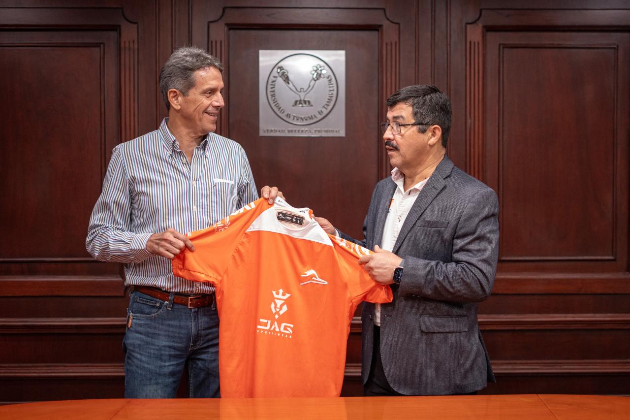 El “Capi” Garibaldi, como también le conoce la afición tamaulipeca, de inmediato se puso la camiseta de la UAT que le entregó el rector como símbolo de esta nueva responsabilidad que asume al frente de los colores universitarios.