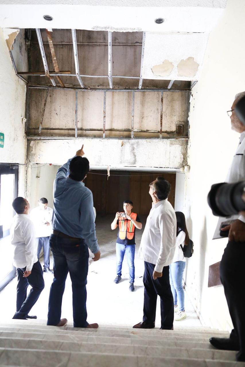 Acompañado por el secretario de Obras Públicas, Pedro Cepeda Anaya, el gobernador fue recibido por Ana Laura Llanas Castillón, directora del Centro de Convenciones, quien le detalló las principales deficiencias del edificio inaugurado en mayo de 1995 y que están siendo atendidas por trabajadores de la dependencia estatal.