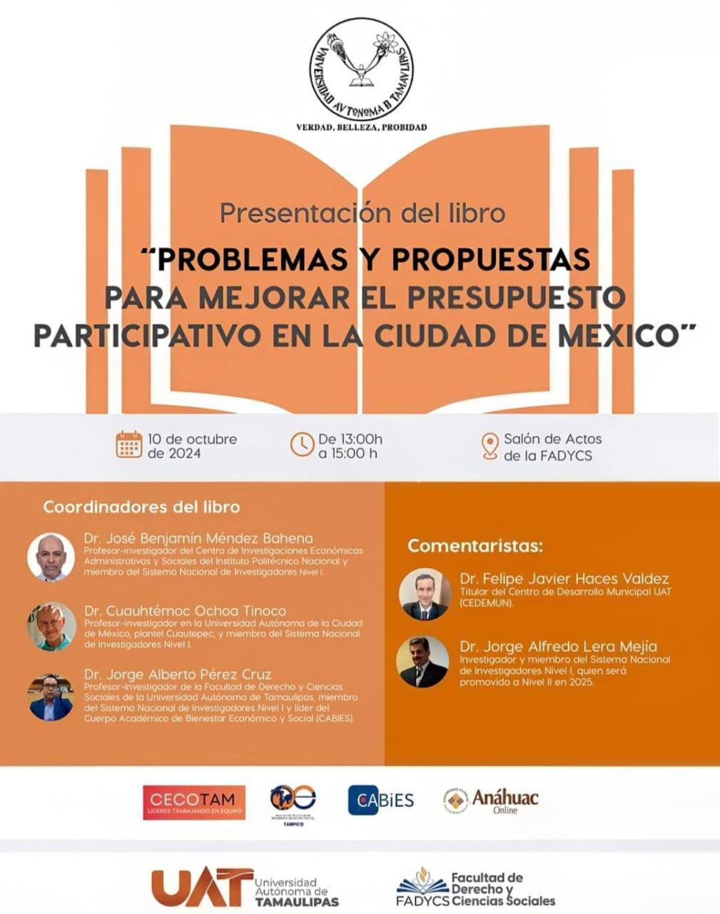 Motivado por la atenta invitación que me extendiera mi amigo y colega, Dr. Jorge Alberto Pérez Cruz, líder del Cuerpo Académico Consolidado "CABIES", para actuar como comentarista, junto al Dr. Felipe Haces Valdez, del reciente Libro" "Problemas y propuestas para mejorar el presupuesto participativo en la Ciudad de México" (Anáhuac Sur OnLine, MAPorrúa, Dic. 2023), cuyos coordinadores son los doctores Benjamín Méndez Bahena, Jorge Alberto Pérez Cruz y Cuauhtémoc Ochoa Tinoco, a continuación, me permito compartir, algunas reflexiones respectivas al mencionado tema, que representa gran relevancia académica administrativa en el mundo de las políticas públicas para los Estados y Municipios.