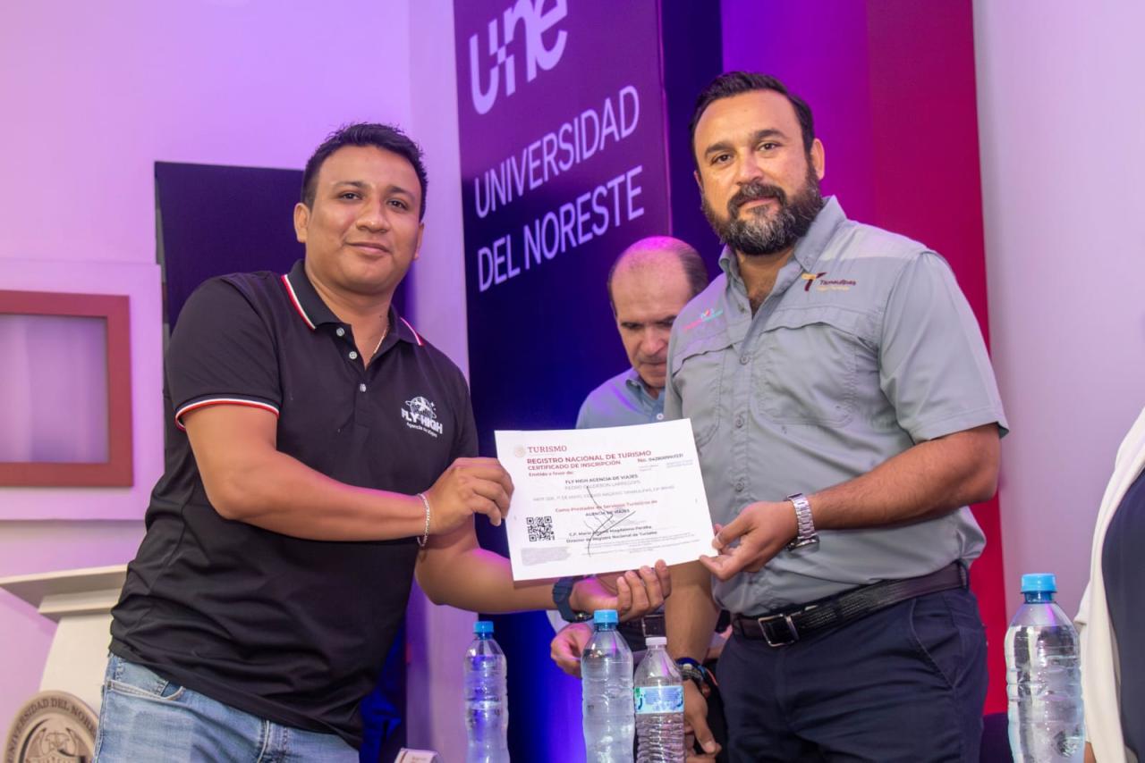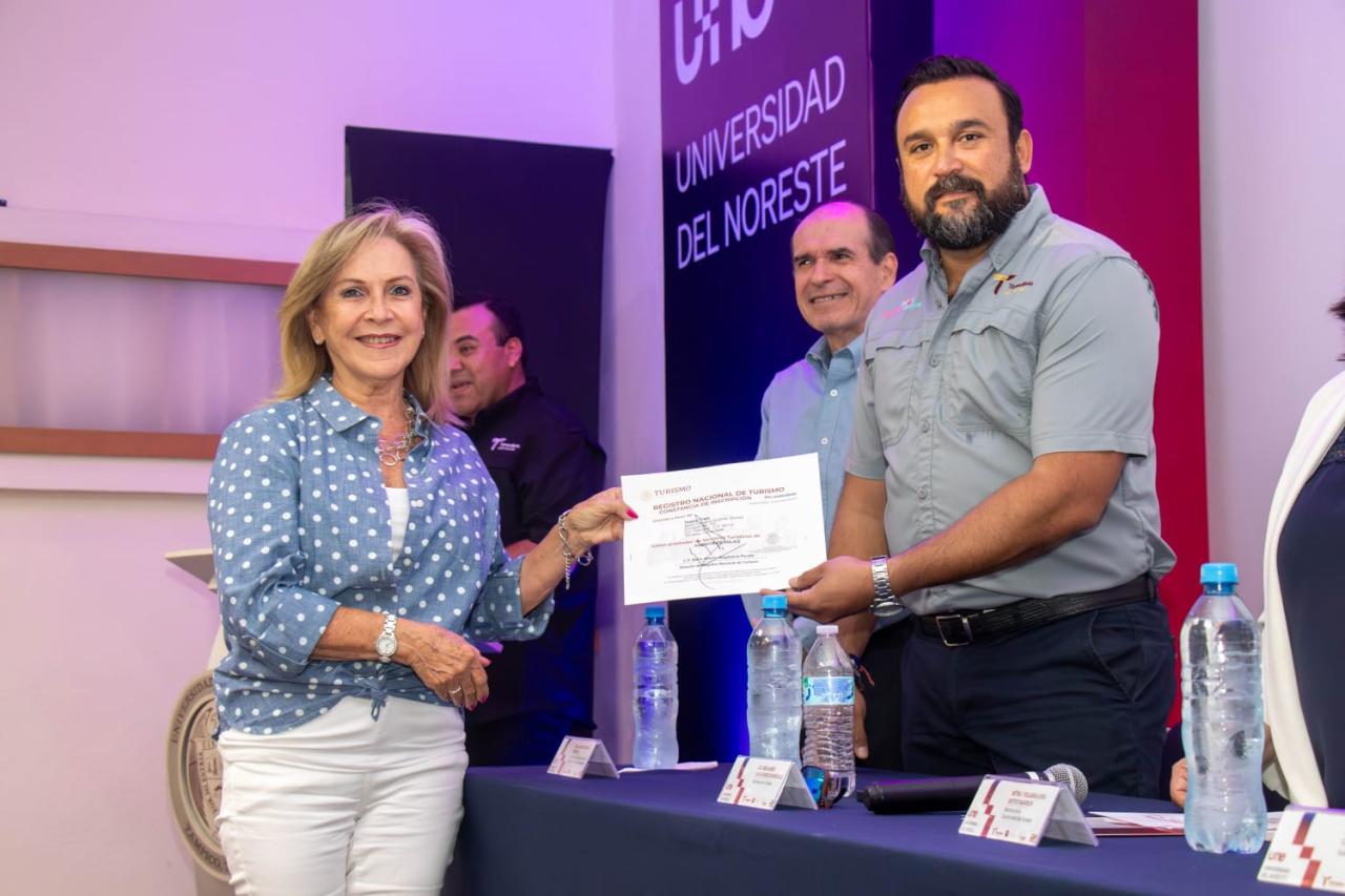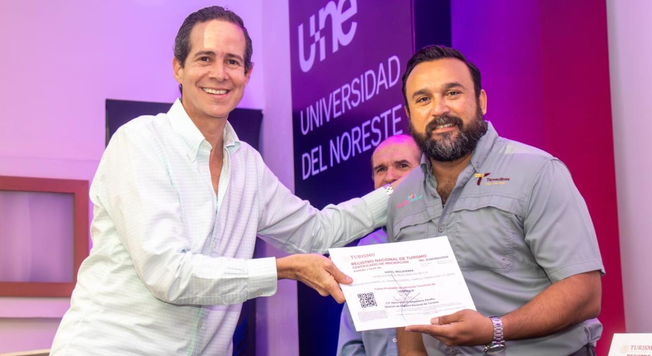 En el evento, realizado en las instalaciones de la Universidad del Noreste, estuvieron presentes la rectora de la Universidad del Noreste, Yolanda Eva Reyes Barrios, y Alberto Ortega Ortega, presidente de la Asociación Mexicana de Hoteles del Sur de Tamaulipas, entre otras personalidades.