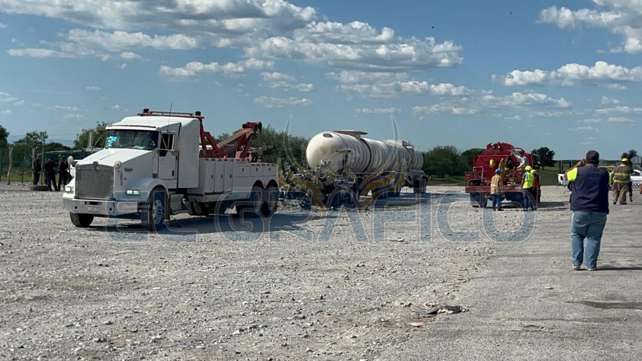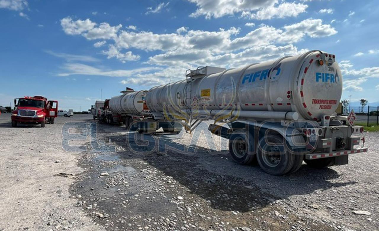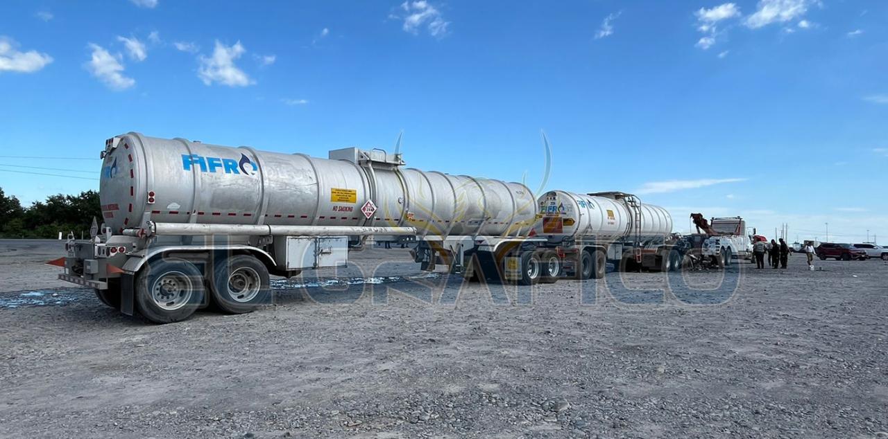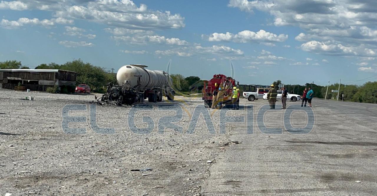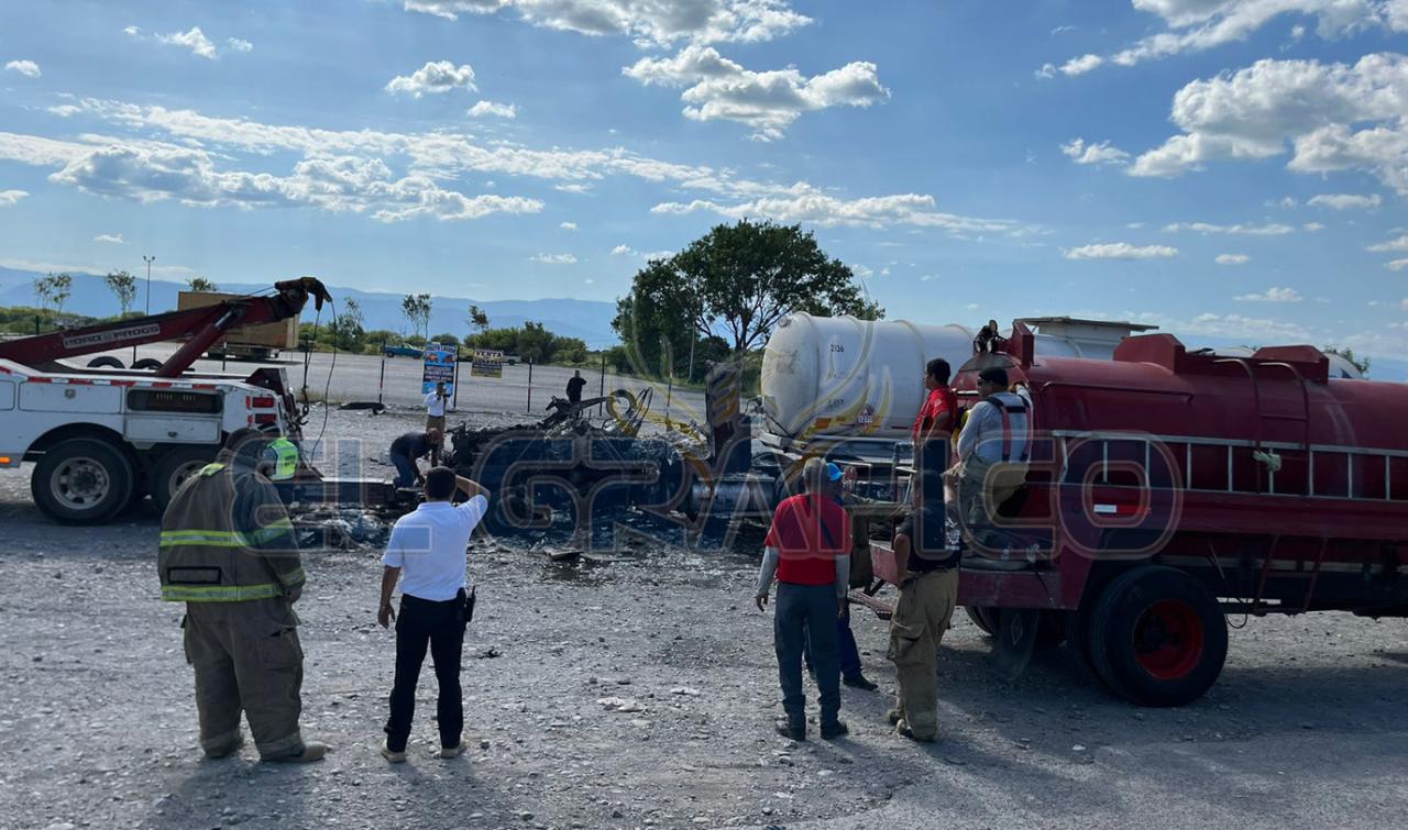 La cabina de un tráiler tipo pipa doble remolque fue completamente consumida por el fuego en la carretera Victoria Zaragoza.
