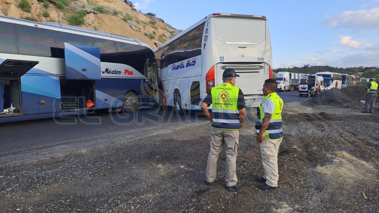 Con un saldo de varias personas lesionadas se registró un choque entre dos autobuses de pasajeros en la Carretera Rumbo Nuevo.