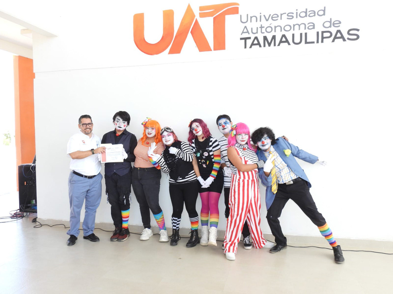 Durante ese primer día de actividades se presentó también el acto de pantomima “Clown clown”, a cargo del taller de teatro de la UAT.