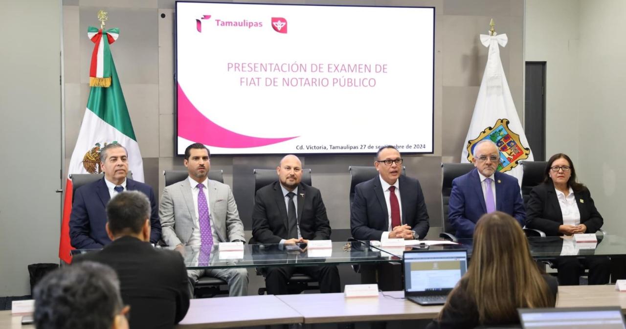 En la aplicación de este examen estuvieron presentes, acompañando al secretario general de Gobierno, la directora de Asuntos Notariales, Guillermina Reynoso Ochoa; el presidente del Colegio de Notarios del Estado de Tamaulipas, Javier Joaquín Aguilar Contreras; el Notario Público 66, Raúl Enrique Padilla García; y el Notario Público 154, Rubén Hiram González Barrera.