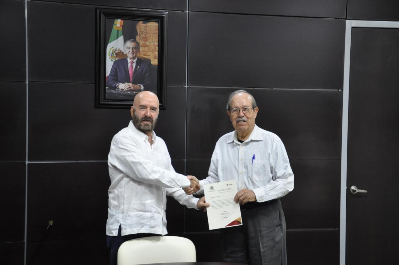 Ciudad Victoria, Tamaulipas.- Bajo la encomienda instruida por el gobernador Américo Villarreal Anaya, de contar con las y los funcionarios mejor capacitados de acuerdo a sus responsabilidades y con sentido humanista, el secretario de Recursos Hidráulicos para el Desarrollo Social, Raúl Quiroga Álvarez, hizo entrega a Juan Enrique Cabrero Ramírez, de su nombramiento como nuevo director general de la Comisión de Agua Potable y Saneamiento del Estado de Tamaulipas (CAPSET).
