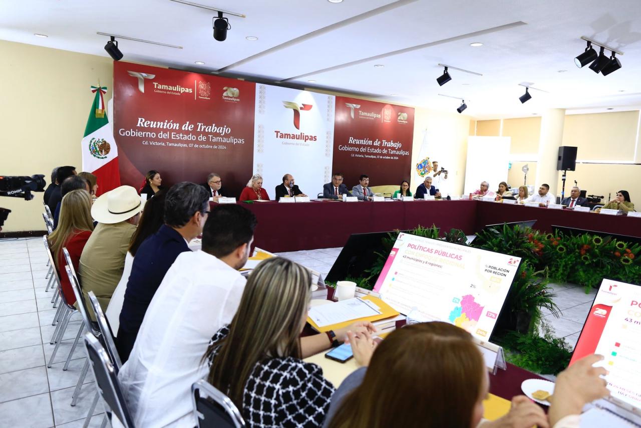 Al encabezar, junto con la presidenta del DIF Tamaulipas, doctora María de Villarreal, y las y los integrantes del gabinete estatal, la primera reunión con presidentas y presidentes de los 43 municipios que recién inician su administración, el gobernador del estado aseguró que este es el momento para trabajar unidos y lograr el desarrollo y bienestar de las y los tamaulipecos.