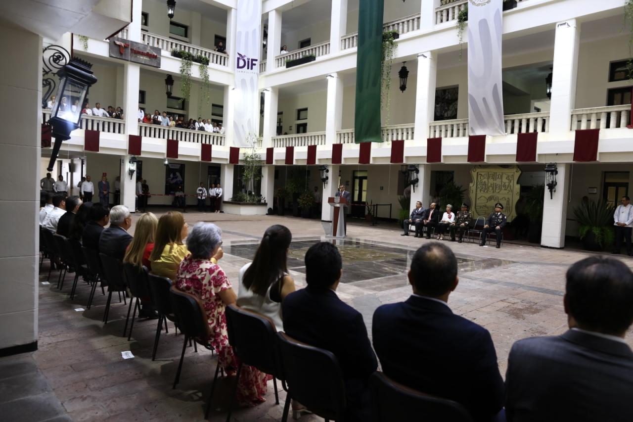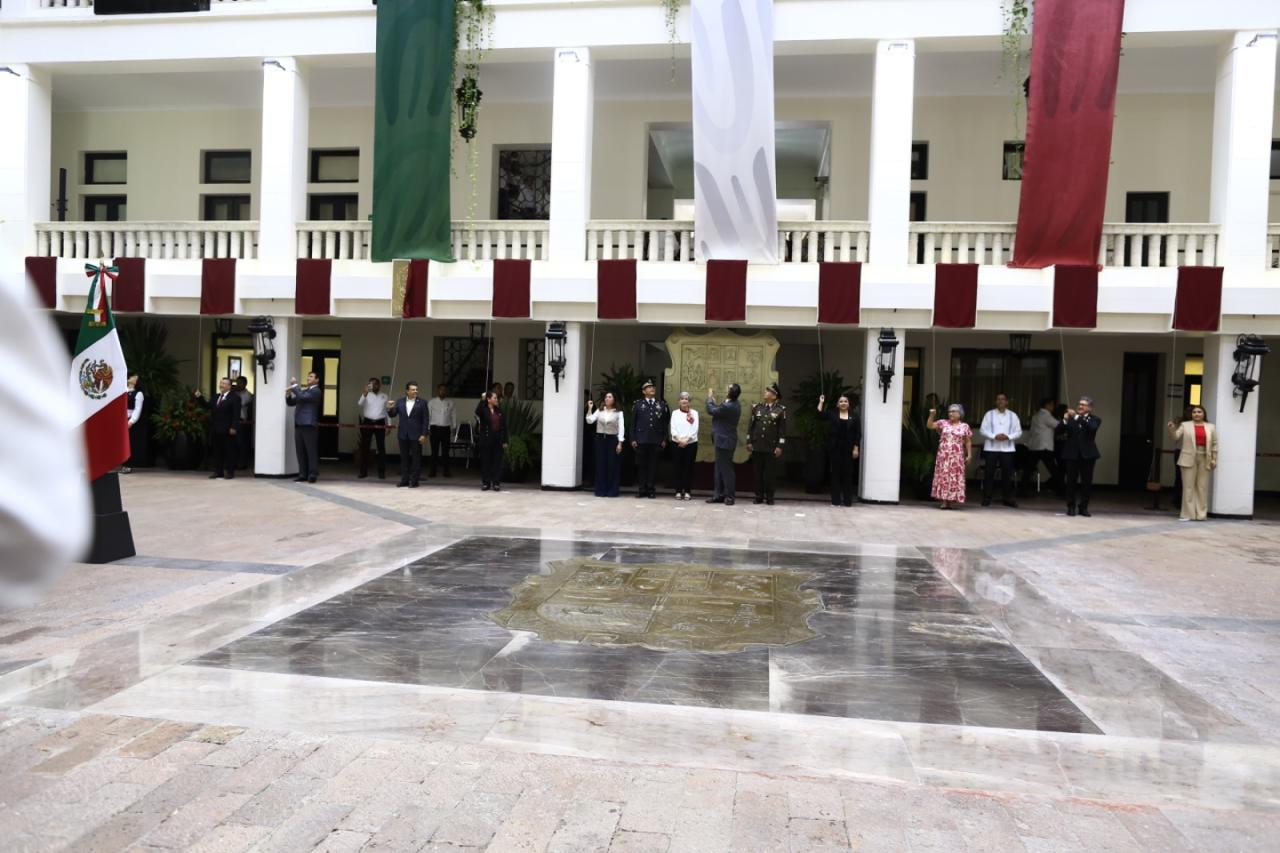 “Que los próximos tres años sean de muy buenos resultados y que estén a la altura de las y los ciudadanos, a quienes nos debemos en todo momento”, señaló el mandatario durante la ceremonia cívica en la explanada central del Palacio de Gobierno.