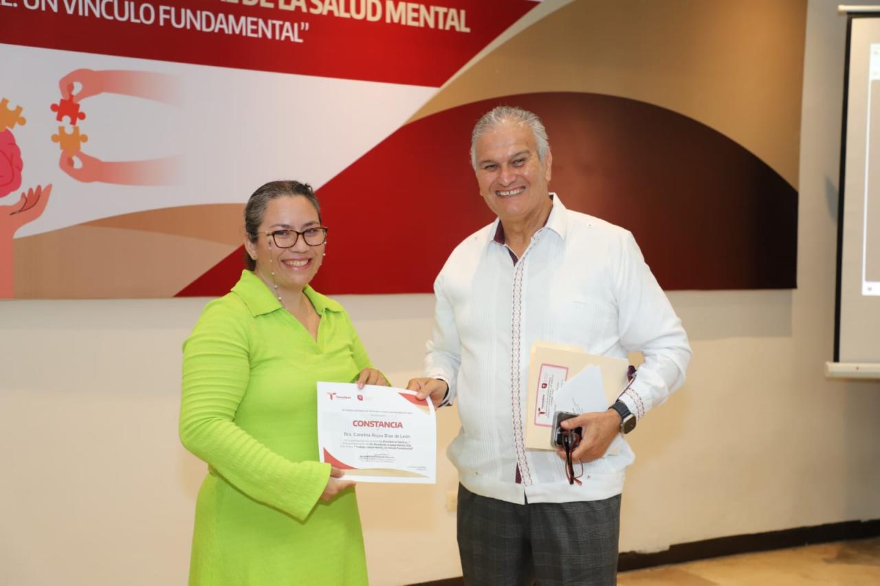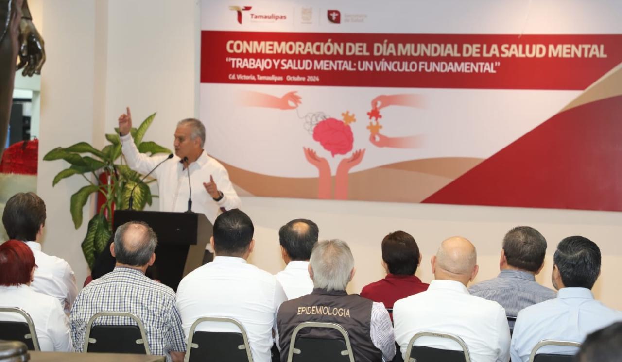 Ciudad Victoria, Tamaulipas. Para conmemorar el Día Mundial de la Salud Mental, el secretario de Salud, Vicente Joel Hernández Navarro, participó en la conferencia “La prioridad en salud es…” presentada por la ponente Carolina Rojas Díaz de León, en la que se destacó que un ambiente laboral seguro y saludable es esencial para proteger nuestra salud mental.