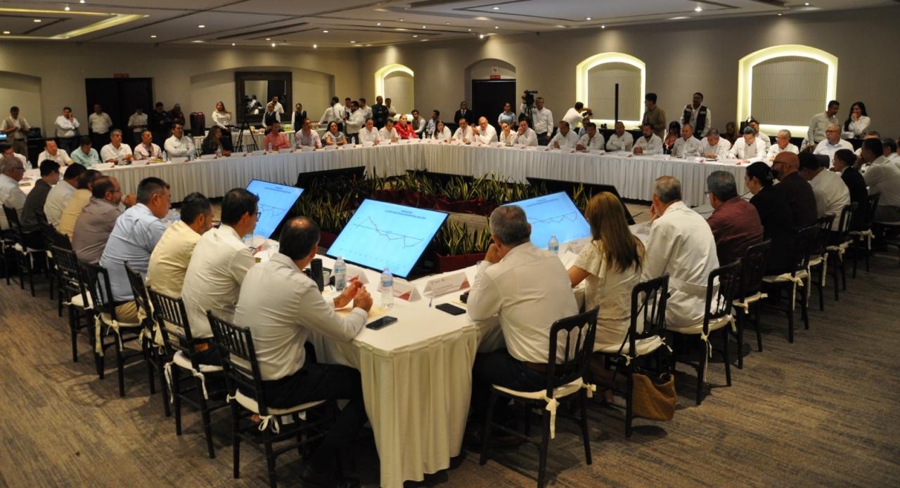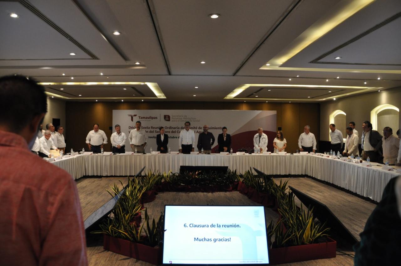 Ciudad Madero, Tamaulipas. – El secretario de Recursos Hidráulicos para el Desarrollo Social, Raúl Quiroga Álvarez, presidió la décima sexta Reunión Ordinaria del Comité de Seguimiento y Evaluación del Semáforo del Cuidado del Agua, acompañado por la secretaria de Economía, Ninfa Cantú Deándar, el representante de la Secretaría de Salud, presidenta y presidentes municipales, directivos del sector industrial y gerentes generales de los diferentes organismos operadores del agua.