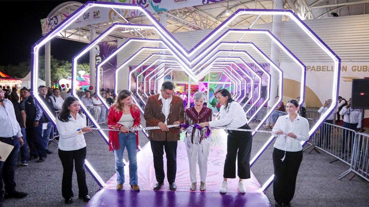 Ciudad Victoria, Tamaulipas. Al ponerse en marcha las actividades de la Feria Tamaulipas 2024, el doctor Américo Villarreal Anaya, gobernador del estado y su esposa la doctora María de Villarreal presidenta del DIF Tamaulipas, cortaron el listón que inauguró de manera simbólica las actividades del stand de los Mensajeros de Paz que cuenta con actividades lúdicas, culturales y recreativas para toda la familia.