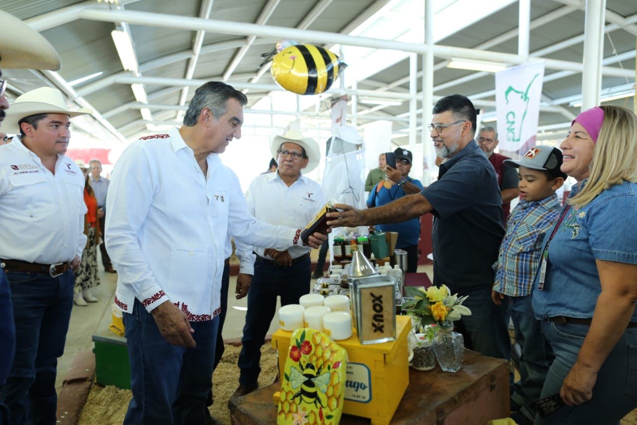 Como parte de su recorrido antes de la subasta ganadera, el gobernador visitó el pabellón de la Secretaría de Desarrollo Rural, el stand de la Unión Ganadera Regional de Tamaulipas, así como una exhibición de maquinaria agrícola, y cortó el listón inaugural de la Expo Ganadera y del pabellón de Emprendedores Rurales.