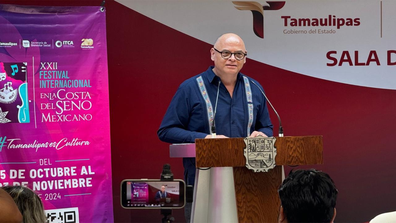Ciudad Victoria, Tamaulipas. - Al reiterar el compromiso de fortalecer la cultura con ejes transversales de inclusión, diversidad, igualdad y humanismo, el director general del Instituto Tamaulipeco para la Cultura y las Artes, Héctor Romero Lecanda, anunció la edición XXII del Festival Internacional en la Costa del Seno Mexicano, que se realizará del 25 de octubre al 3 de noviembre.
