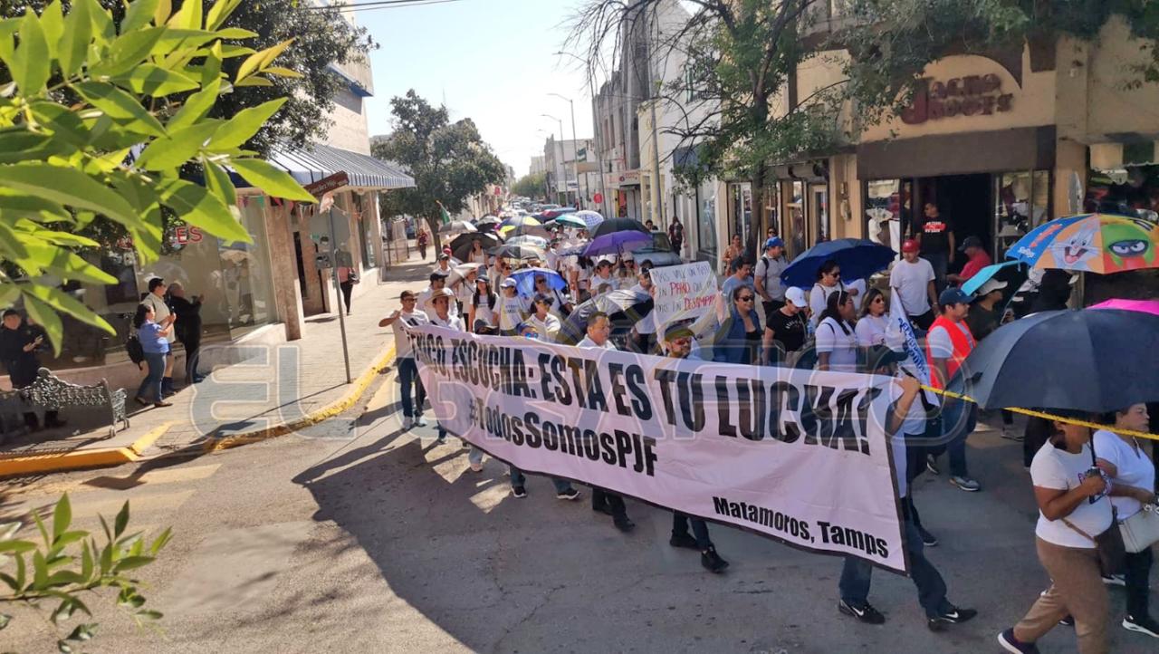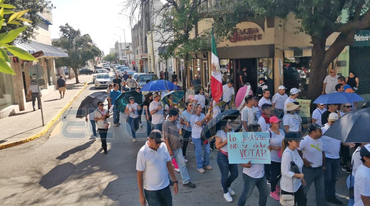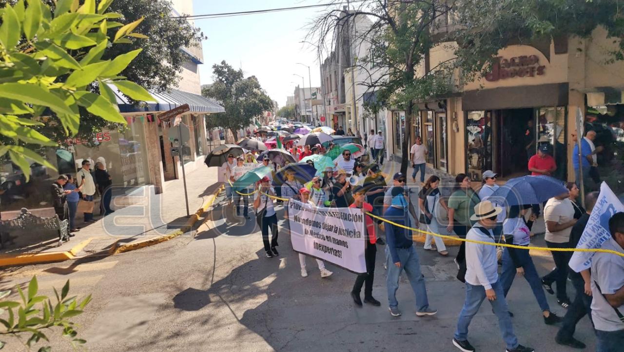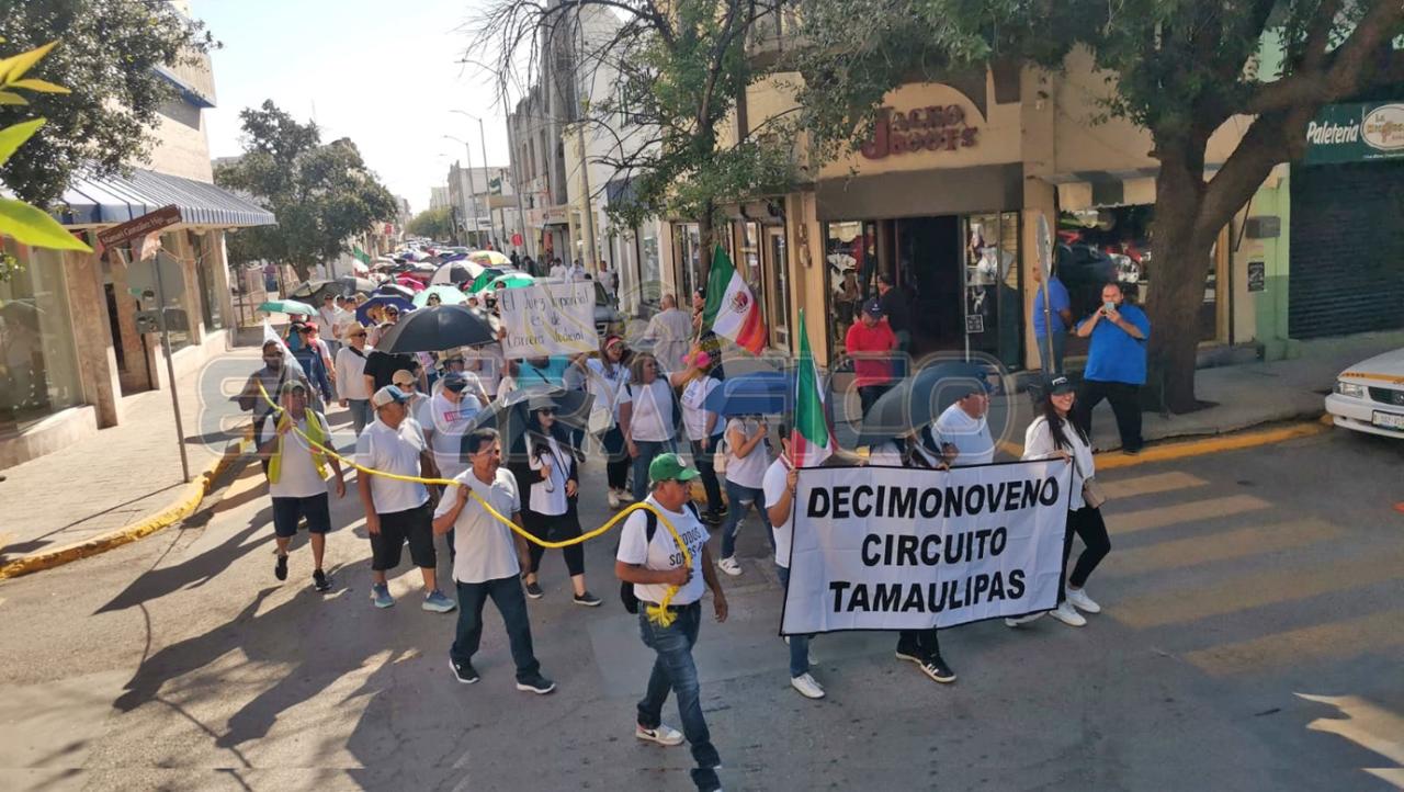 Hoy martes, poco más de 200 trabajadores del Poder Judicial de la Federación del Décimo Noveno Circuito realizaron una marcha por la zona centro de esta Ciudad Capital en protesta a la reforma judicial.