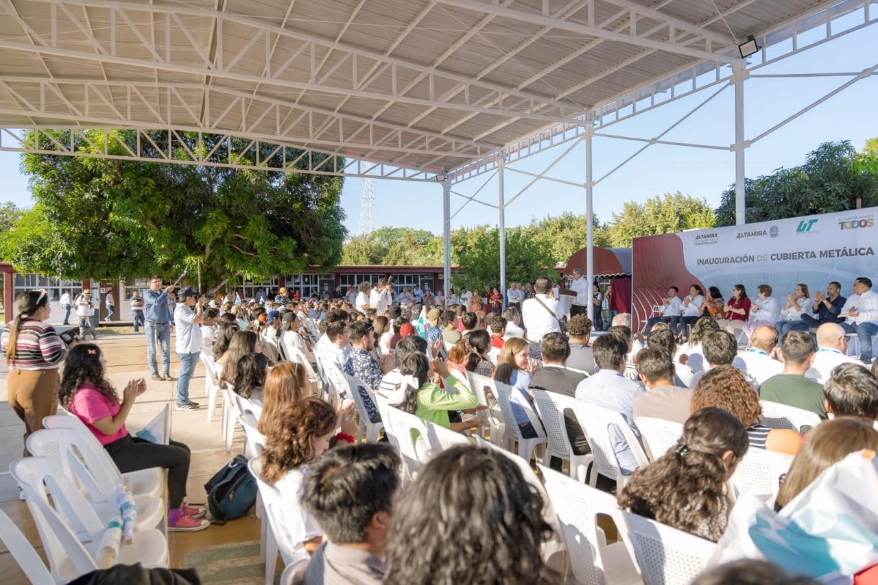 Previo a la ceremonia de reconocimientos, el gobierno municipal de Altamira, representado por su alcalde, Armando Martínez Manríquez, entregó en la universidad, la cubierta metálica de las canchas gemelas (canchas de voleibol y básquetbol) construida con recurso de obra pública municipal.