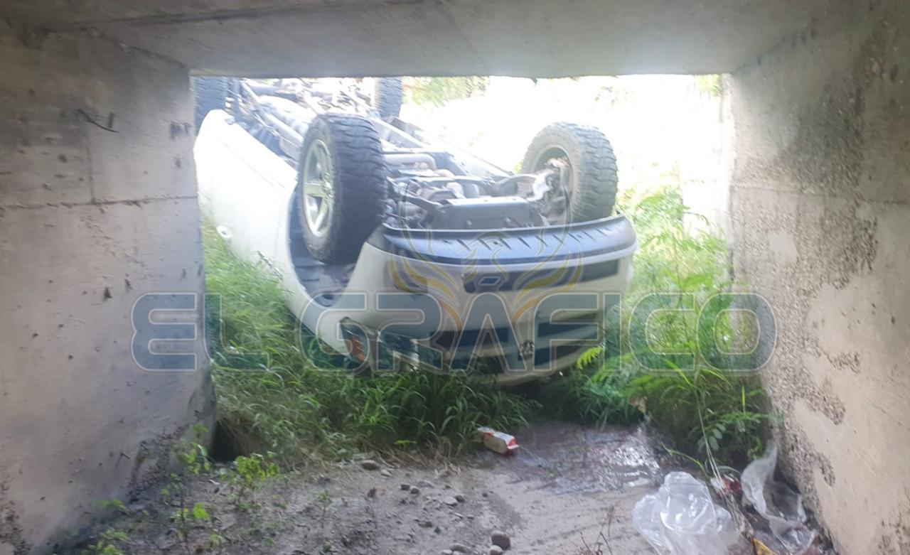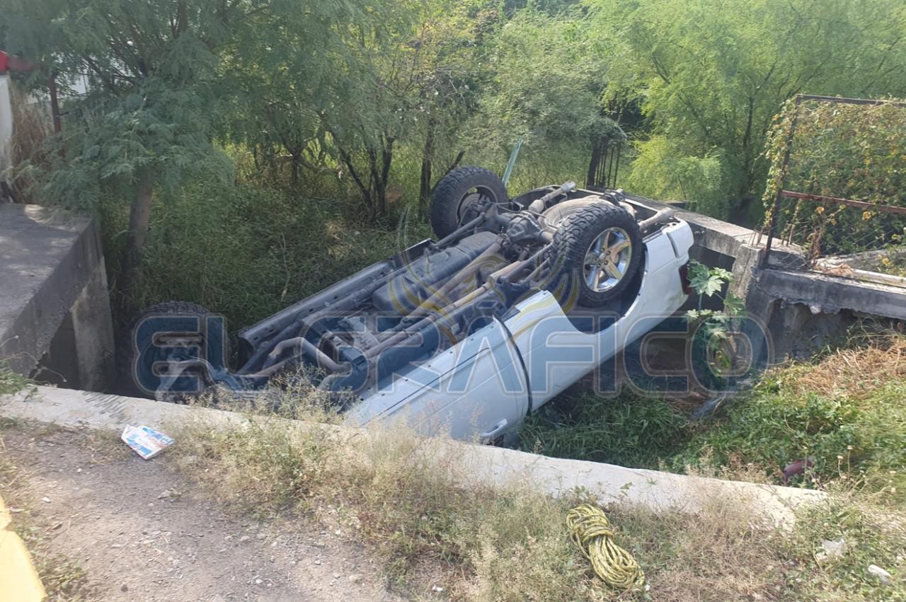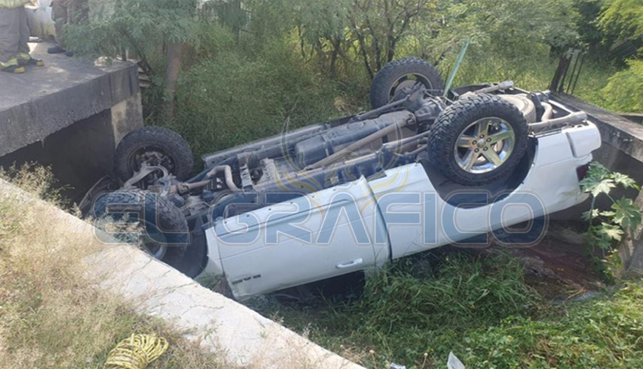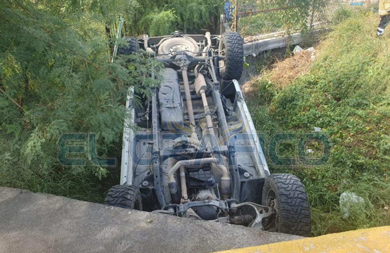 Al dejar su vehículo en neutral en una pendiente, la camioneta se desplazó sin control varios metros hasta caer a un canal de aproximadamente tres metros de profundidad para quedar en su posición final con las cuatro llantas hacia arriba.