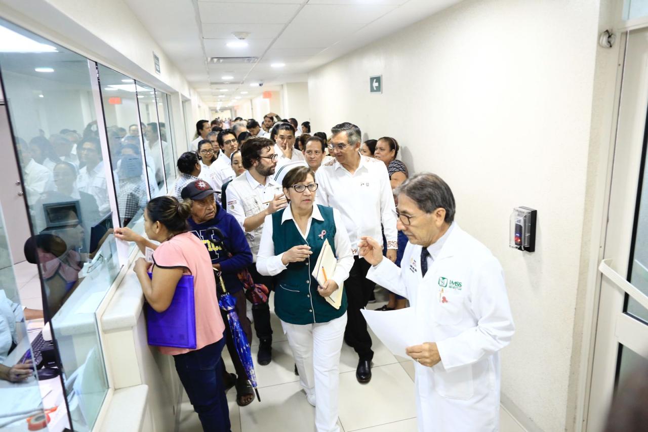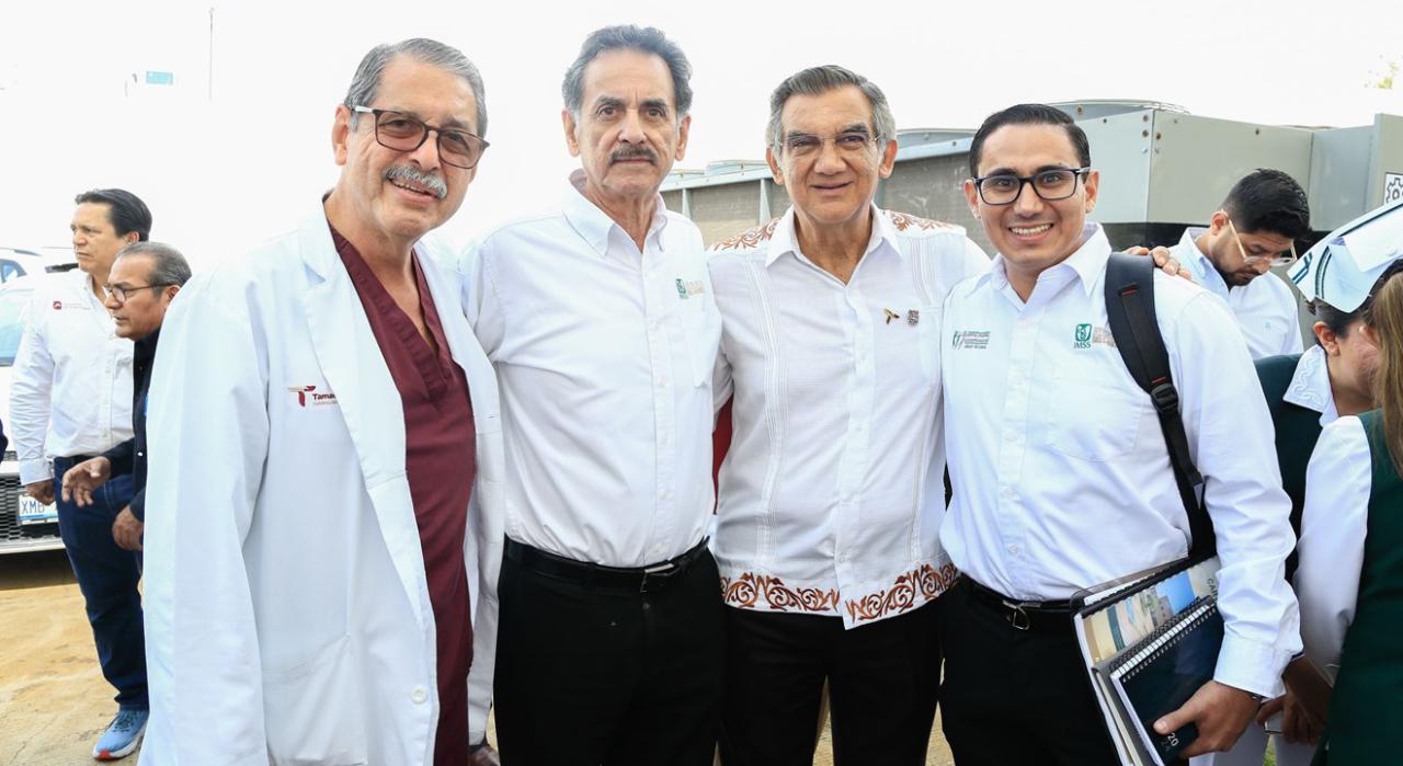 Acompañaron al gobernador en estos recorridos, Vicente Joel Hernández Navarro, secretario de Salud en Tamaulipas; Marggid Rodríguez Avendaño, coordinador estatal del IMSS-Bienestar; y Joaquín Juárez Durán, director del hospital Canseco.