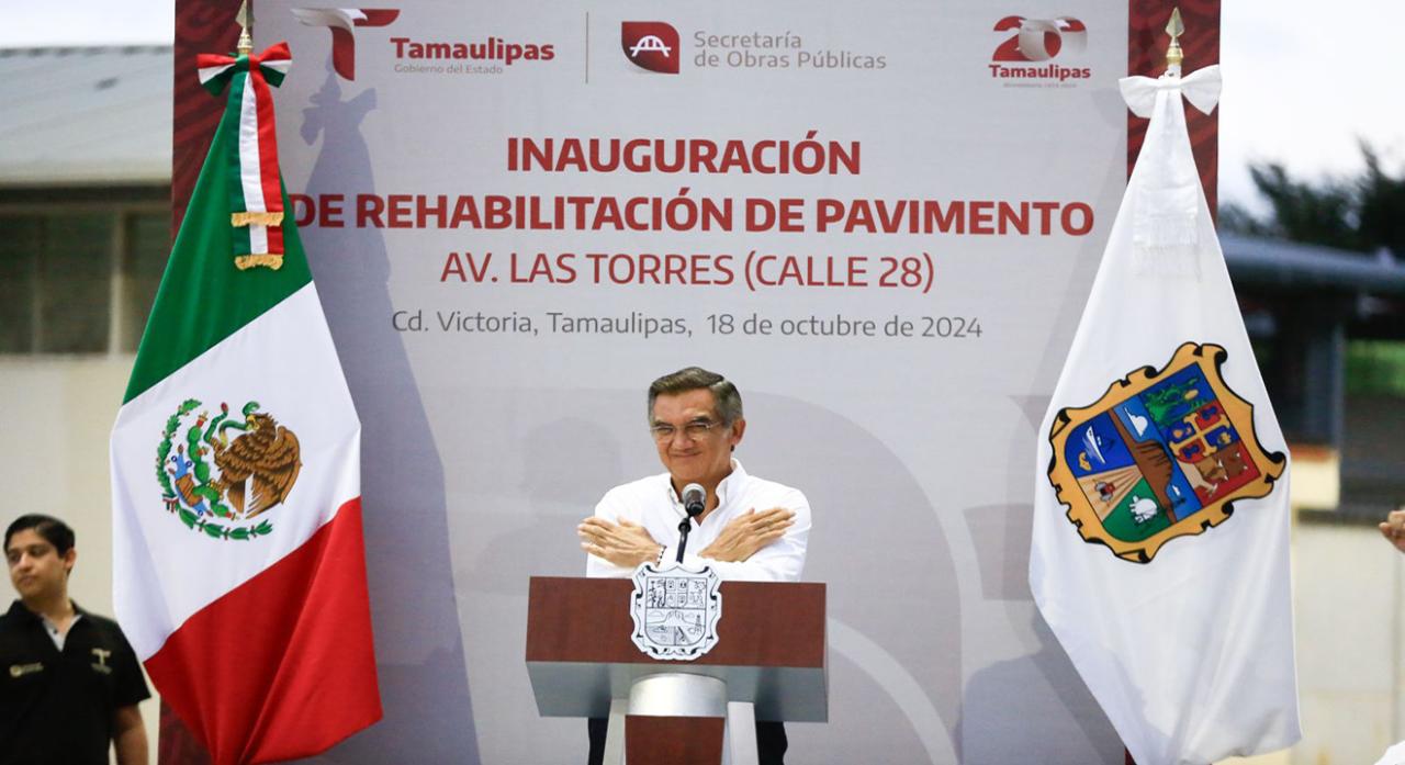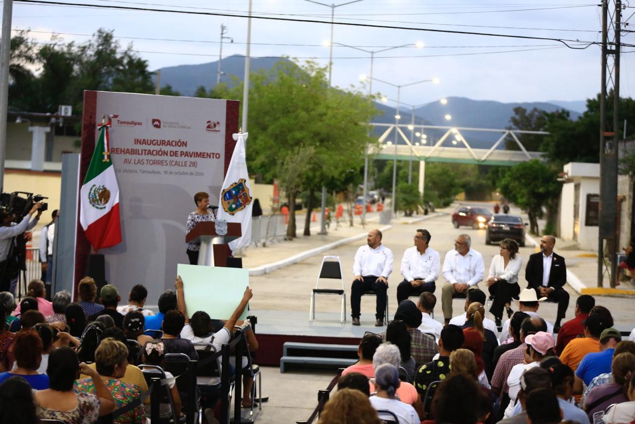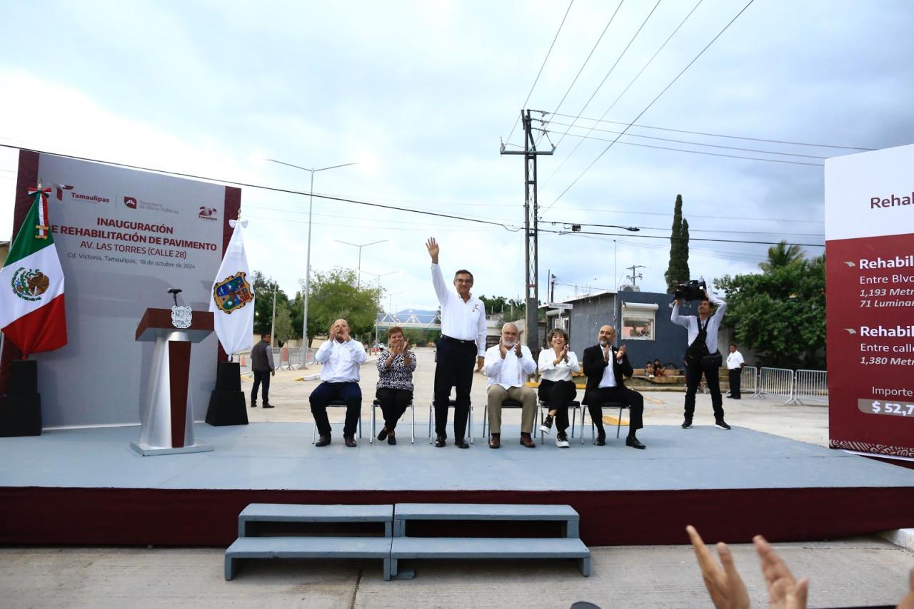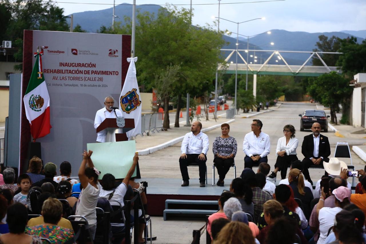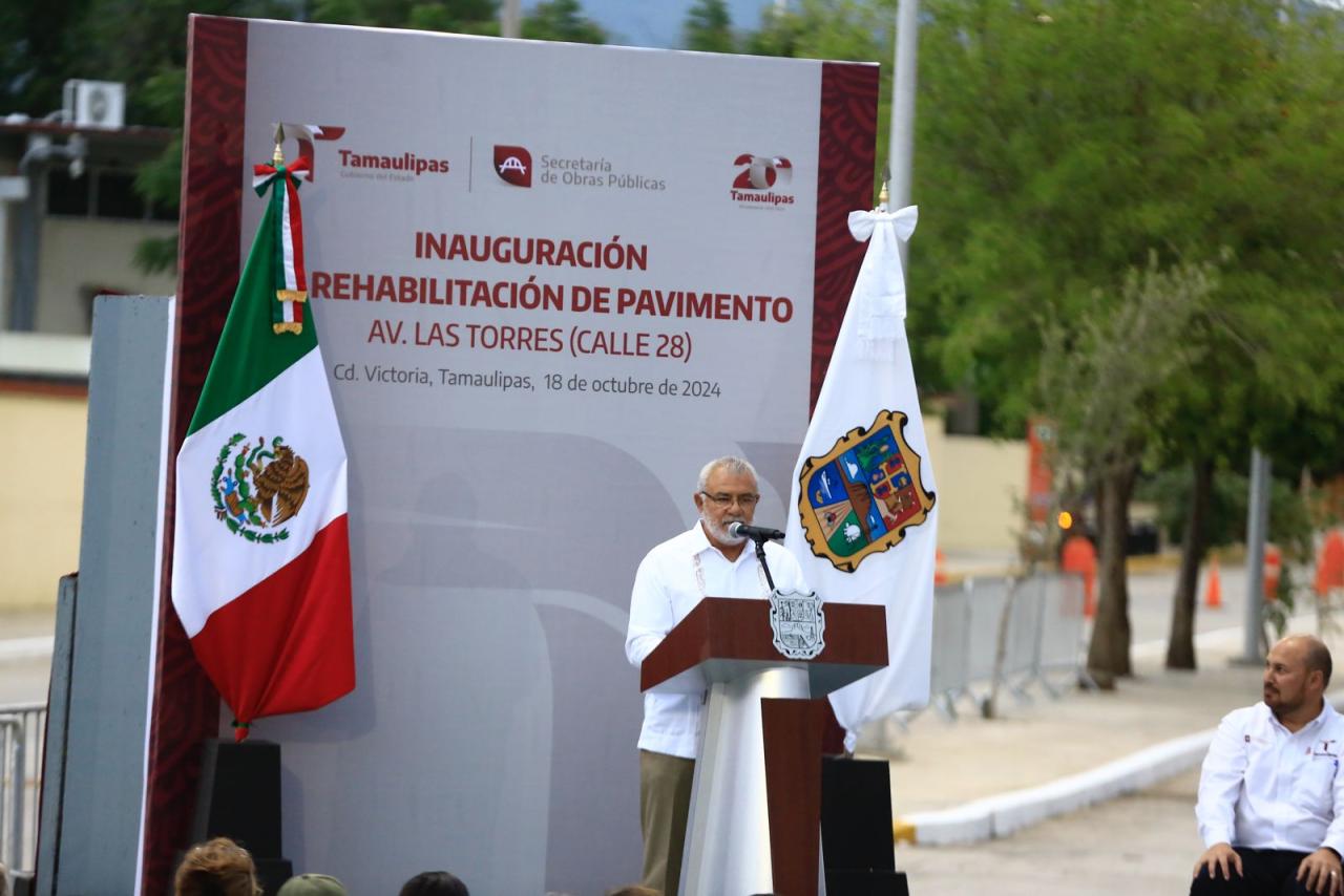 Al encabezar la inauguración de la rehabilitación de pavimento de la avenida Las Torres (calle 28), obra en la que se invirtieron 52.7 millones de pesos, en beneficio de más de 3 mil habitantes de diversas colonias de este sector de la ciudad, el mandatario estatal llamó a las y los victorenses a ser una sociedad participativa y colaborativa para beneficio y desarrollo de la capital.