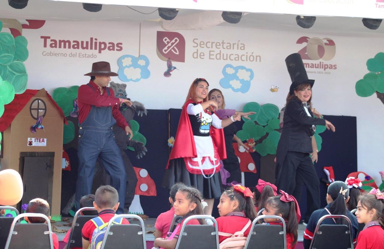 Comentó que durante las mañanas, estudiantes de diversas instituciones educativas de nivel básico, disfrutaron y aprendieron con la obra de teatro “La Caperucita Rebelde” que se presentó en el escenario del stand de la SET, en donde se hizo consciencia en la importancia de cuidarse, además de que se dio a conocer sus programas educativos.