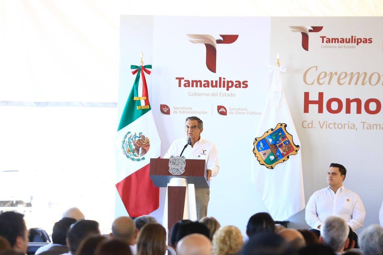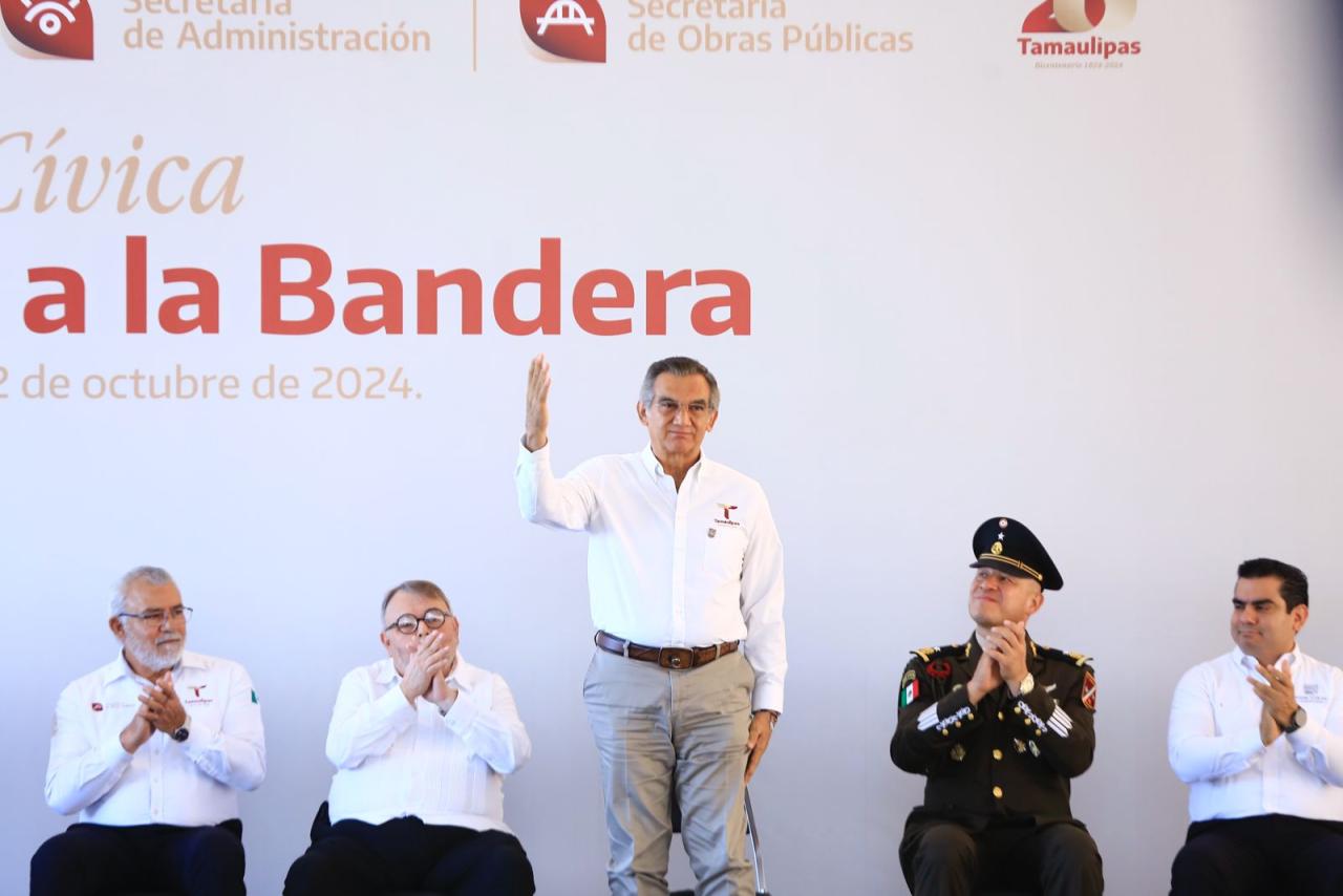 Al entregar la rehabilitación de la escultura monumental Águila del Bicentenario, esta mañana, el gobernador del estado llamó a las y los servidores públicos a seguir trabajando con entusiasmo, responsabilidad y compromiso para continuar fincando el futuro de Tamaulipas y contribuyendo a la grandeza de México.