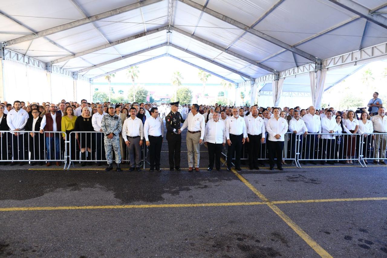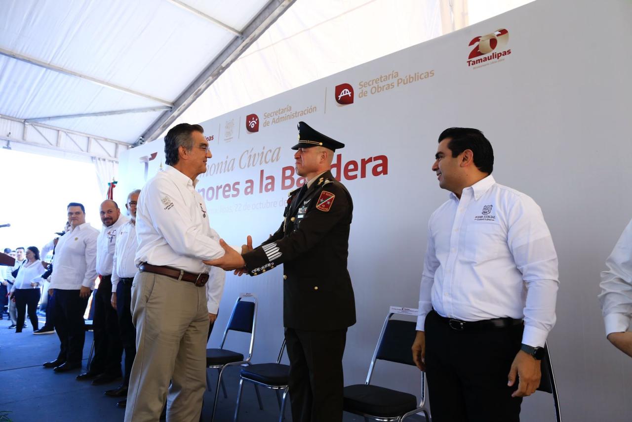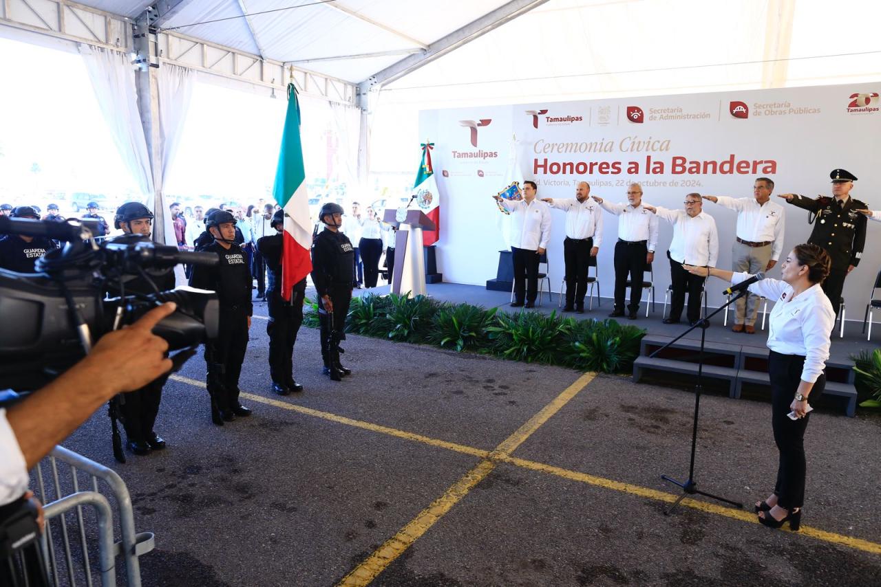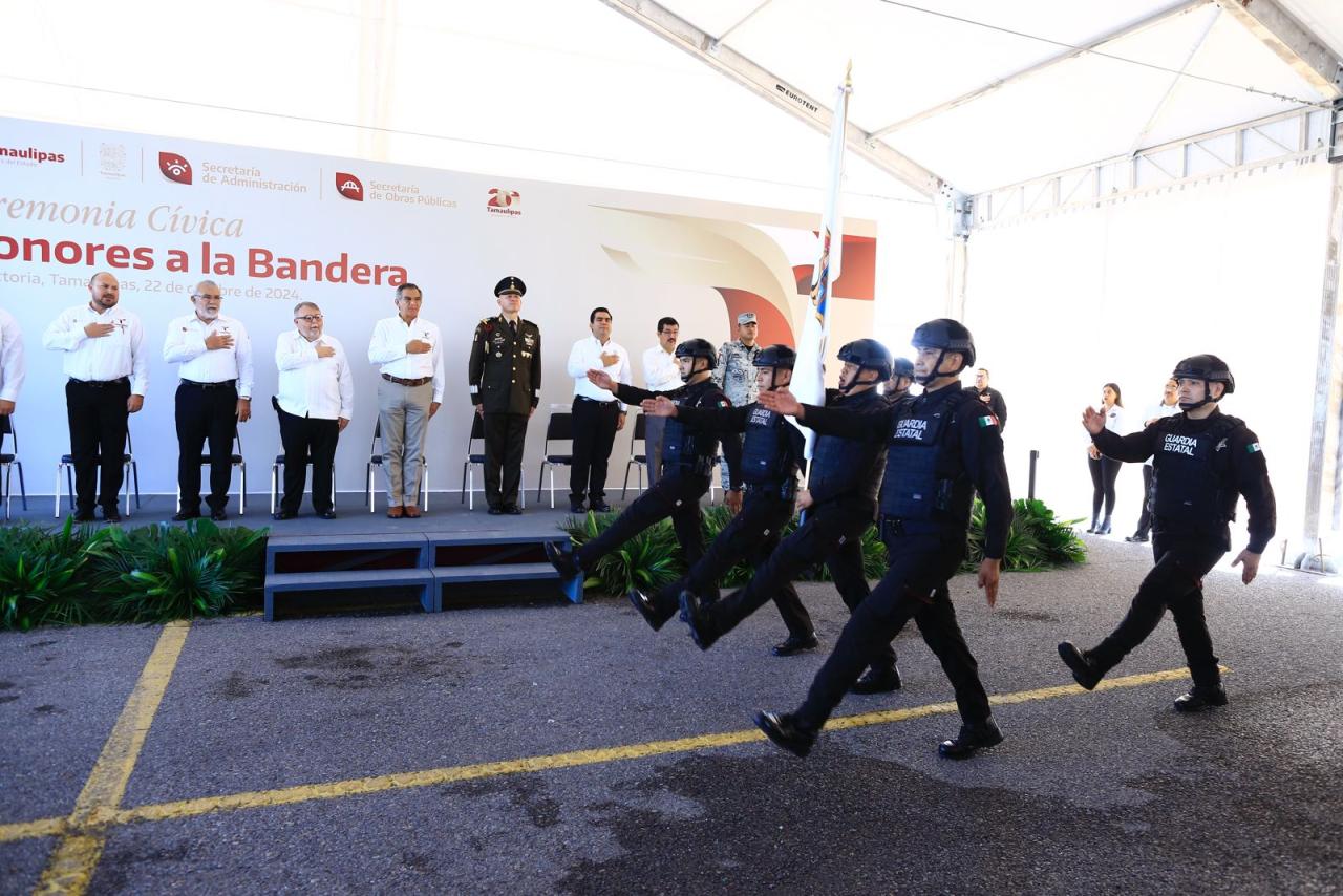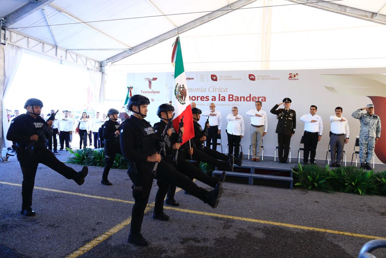En la ceremonia cívica de honores, el secretario de Administración, Jesús Lavín Verástegui, refrendó el compromiso para garantizar que los recursos públicos sean administrados con eficiencia, siempre en beneficio del pueblo, reflejando el humanismo que ha sido sello ineludible en la directriz que marca el gobernador Américo Villarreal.