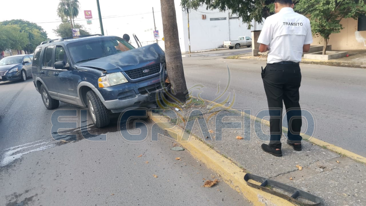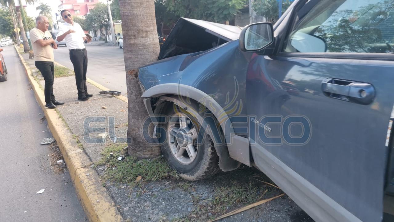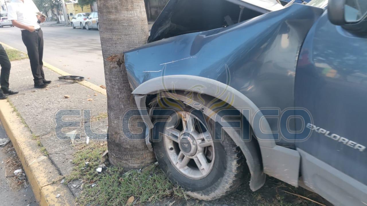 El exceso de velocidad al tratar de incorporarse a la circulación vehicular de la Calle 16 le salió caro a una mujer que terminó por estrellar su camioneta de manera frontal contra una palmera.