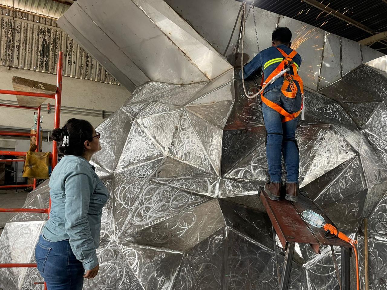 La y los jóvenes que participan en esta gran obra escultórica y religiosa, pertenecen a la carrera Técnica de Soldadura Industrial y están guiados por sus docentes Nelly Verónica García Coronado (ITACE Matamoros) y Luis Ángel Solís Gámez (ITACE Victoria).