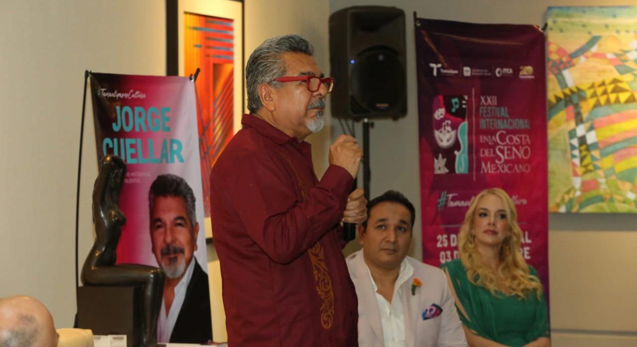 Ciudad Victoria, Tamaulipas.-En el marco del XXII Festival en la Costa del Seno Mexicano, Jorge Cuéllar Montoya presentó el libro "Tamaulipas: Breve Historia de Talentos".